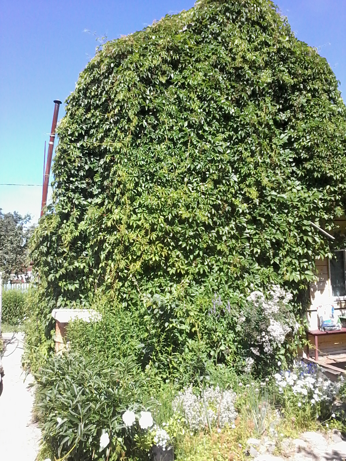 Осенью очень красив - не хуже винограда. Думали, что он более аккуратный, какой там - лезет побегами под крышу. Быстро так осваивается.