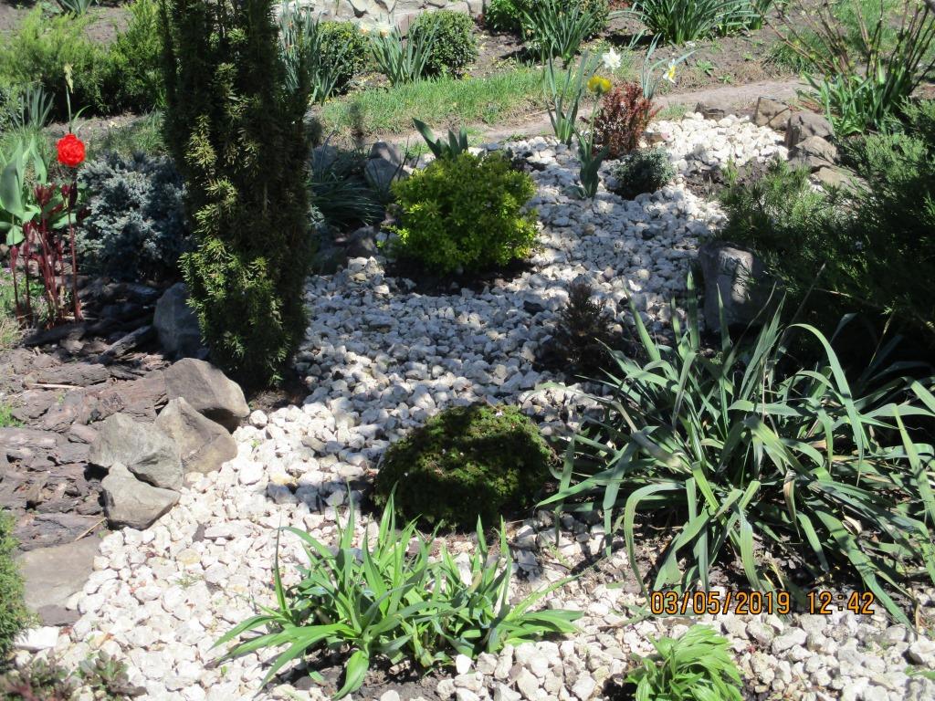 Я вот тебя, Леночка, сейчас стала лучше понимать. Раньше меня больше тянуло к цветному и цветастому, а ты всё про кустарники писала... Спустя годы я поняла, что это за прелесть, когда ты посадил цветное пятно и оно почти весь сезон есть. Цветы отцвели, палитра красок на клумбе поменялась... И уже ты в растерянности... ай-яй-яй, что делать? У меня в саду немного подросли хвойные, появилось больше кустарников. Уже в трёх местах лежат шишки, что делает сад менее уходным и более аккуратным. Хотелось бы больше камней... но уже нет возможности. А ты свои камешки положила так, как вам лучше, значит так и нужно. Если захочется перемен - можно повернуть и изобразить "скалку". И растения тогда вокруг посадить более низкие... Твой кружок напомнил одно фото, что мне очень понравилось когда-то... Ведь к камешкам нужно что-то ещё! Представь, что "кружок" - это пруд, добавить пару больших камешков, посадить несколько "лопушков" и... вуаля - будет прелесть!