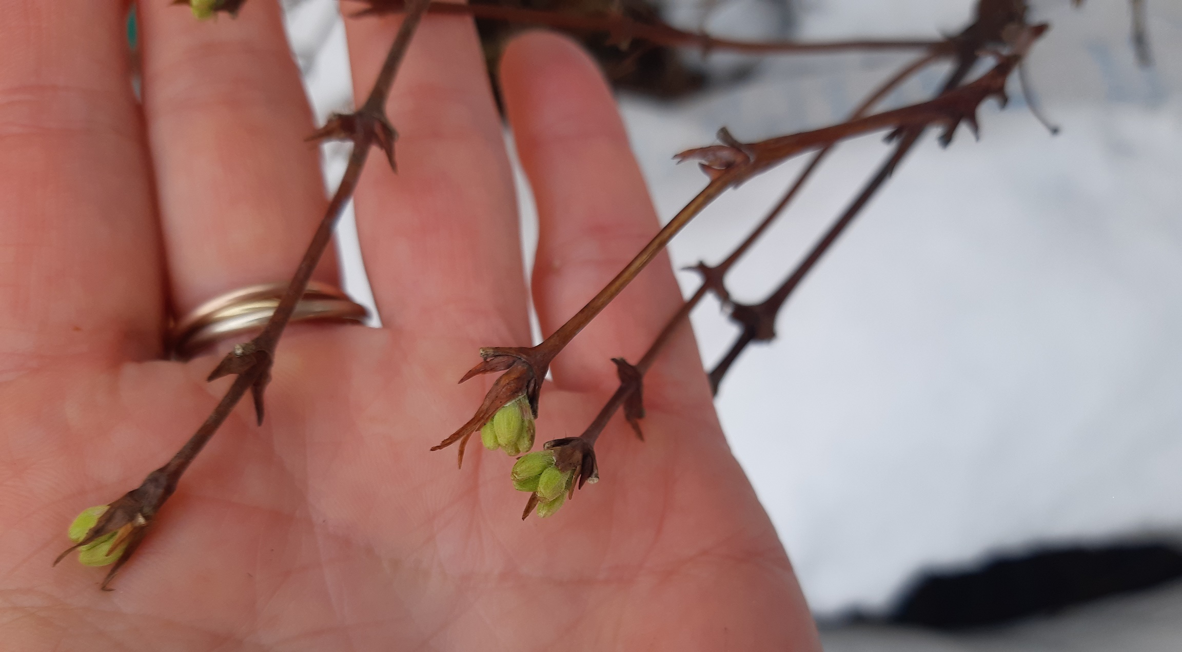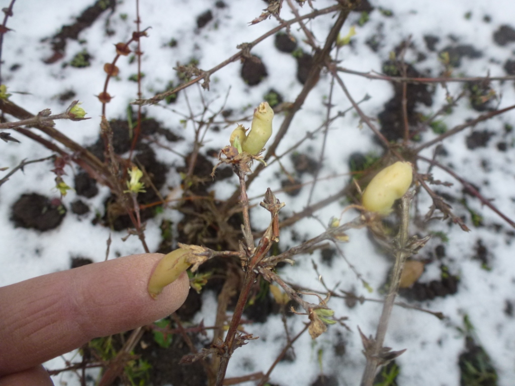 Вчера была в саду.Погода плюсовая,снега очень мало.У взрослых кустов жимолости набухли цветочные почки,на молоденьких( до 5 лет) не видно пока.