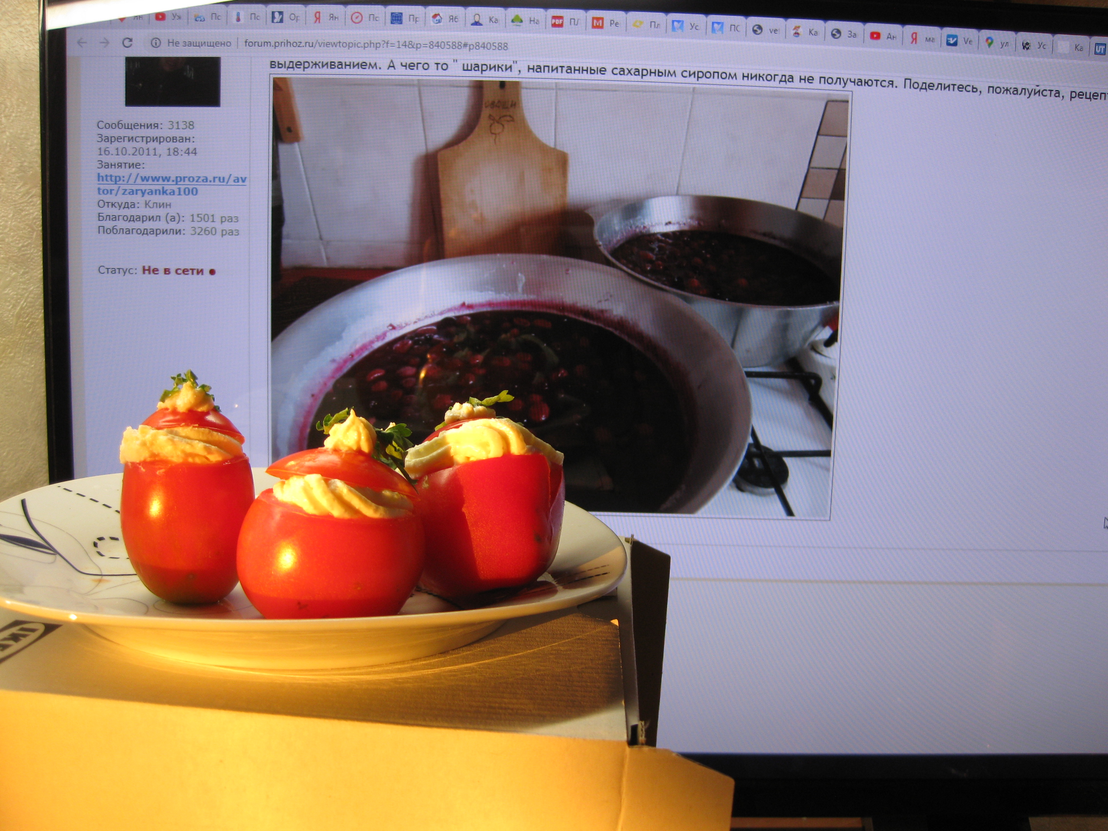 Не ну, кому варенье, а мне томаты. Началась пора. Томаты берутся сливочные, по форме. Творог , две трети смешивается с одной третью сливочного масла. Туда давленный чесночек. И этим фаршируются помидорки. Кому, как а меня за ухи не оттянешь. :D