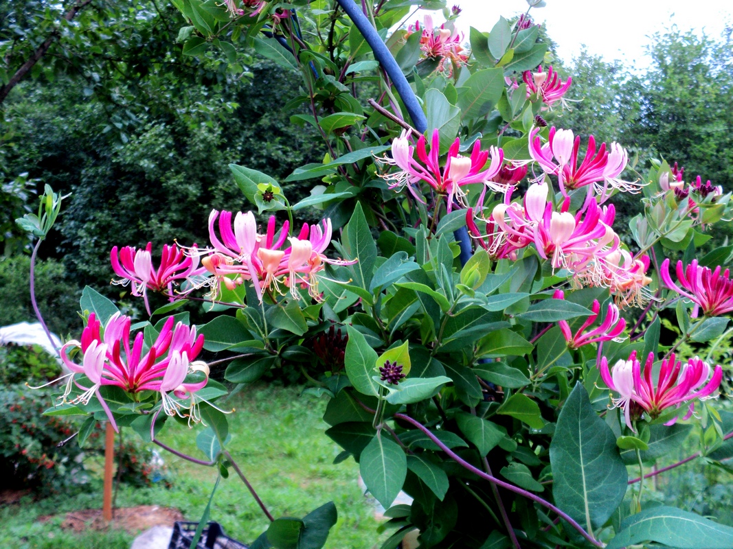 Вторая жимолость (похожа на Сиротина) остаётся на арке. Перезимовка разная, видимо, в зависимости от морозов. Бывает, приходится обрезать весной сухие ветки.