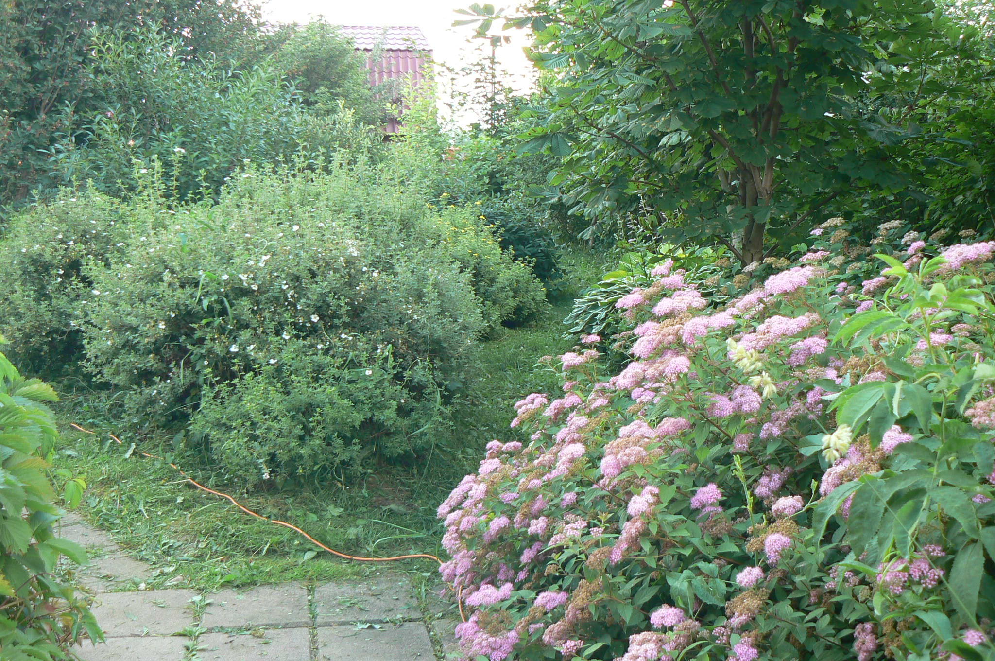 Теперь девичий уберём, а чтобы открывшиеся борта не блестели, надо посадить...что-то такое. Нашла, что среди спирей есть и меньшего диаметра кустики. Сорт Japanese Dwarf диаметром 40 см, это меньше, чем Little Princess (60 см).Но прочла в drevo-spas.ru, что Джапаниз подвержен какому то зимнему замоканию... Чего это такое? Вымоканию, что ли? Но, вроде, такое только на юге бывает.