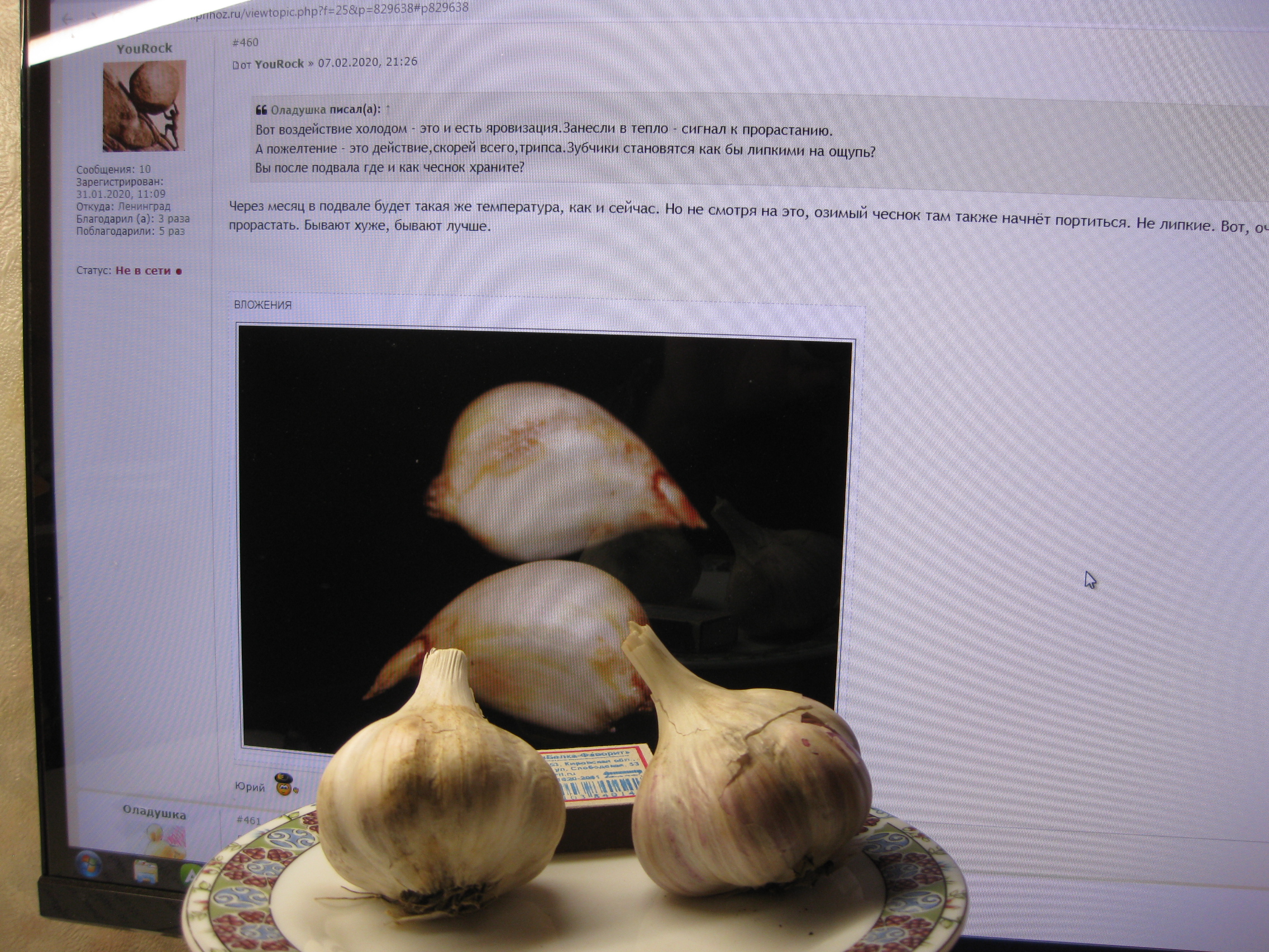 YouRock писал(а): 07.02.2020, 11:47 Если бы я чеснок яровизировал, то он просто бы начал прорастать. А он сначала желтеет (темнеет), а потом начинает прорастать