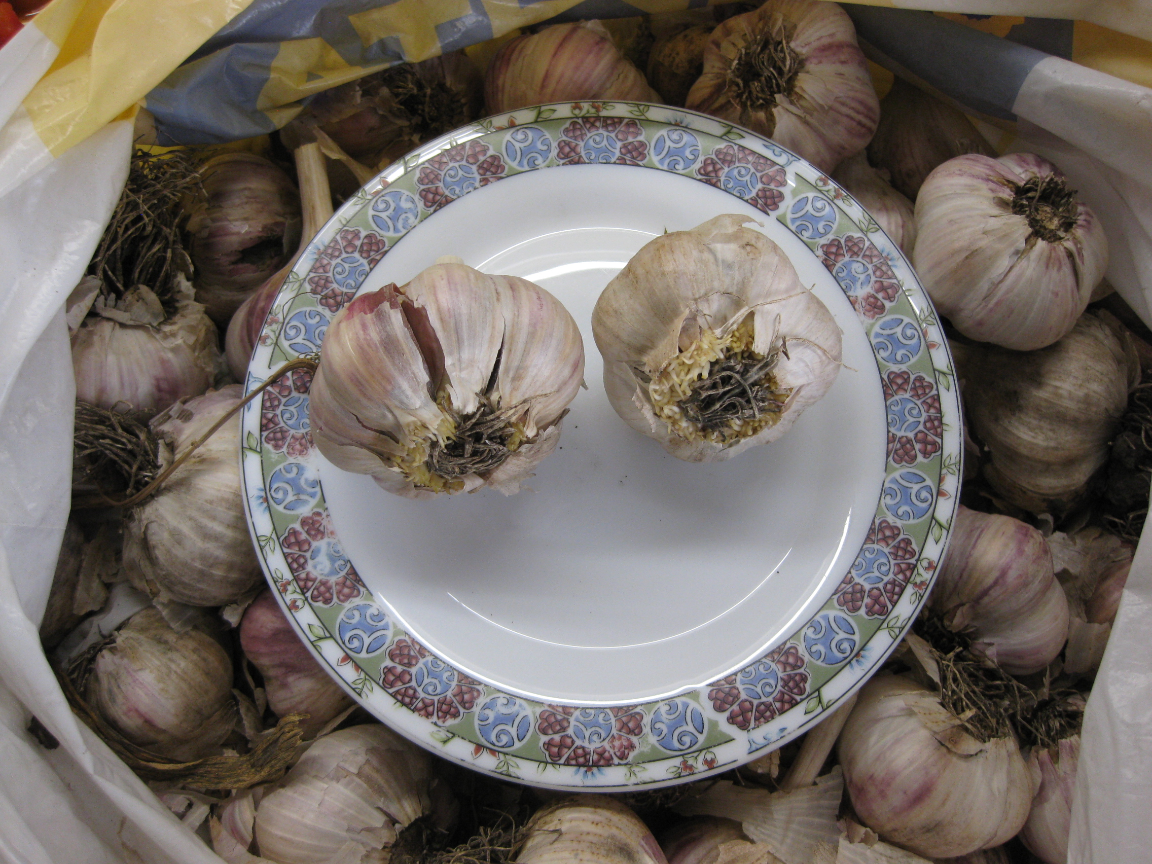 Если, кто помнит, там эксперимент начинался по лежкости чеснока.viewtopic.php?f=25&t=7492&start=450 Была теория сортов и теория стратификации. У меня этот озимый много лет и обычно лежит до нового урожая. Хранится в квартире, в кладовке, в большом пакете. В феврале две головки поместил в ящик, на лоджию, где довольно прохладно. На месяц. Когда стало теплеть, составил в п.э. пакет и на нижнюю полку холодильника. 26.04 достал для дальнейшего наблюдения. Оказалось уже сейчас головки из холода начали делиться на зубцы и пустили корешки. Вряд ли они теперь долго пролежат. В контрольной партии все, как ни в чем не бывало.