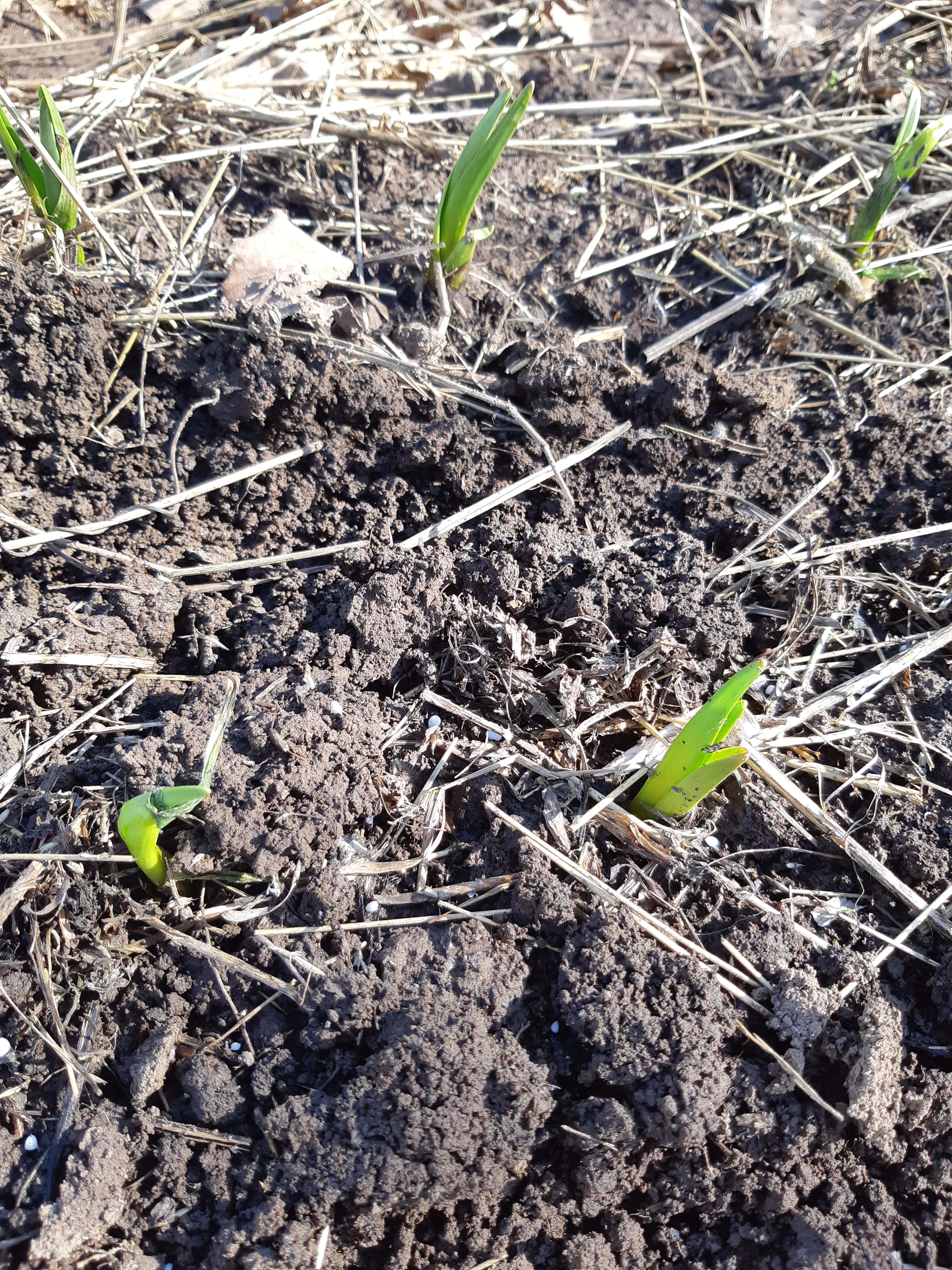 И ещё в прошлом году поздно весной сняли зимнее укрытие с чесночной грядки.Из-за этого земля не прогрелась и он долго всходил.