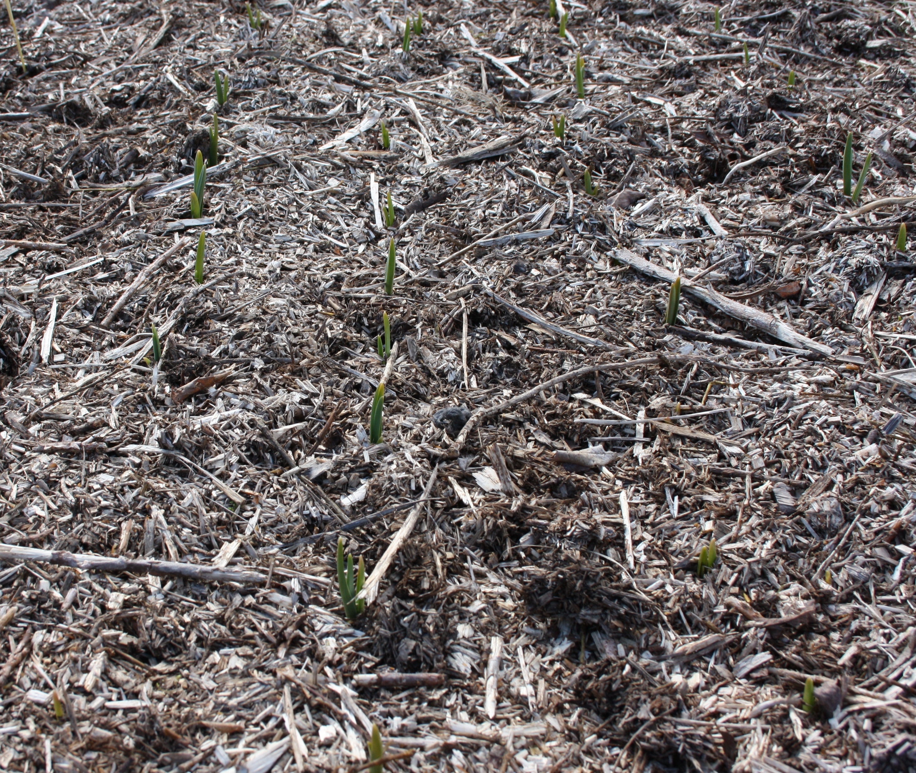 Ранней весной всё же проливаю аммиаком. А потом времени на него не хватает. Ну да, ещё стрелки выламываю... Самая малотрудозатратная культура.