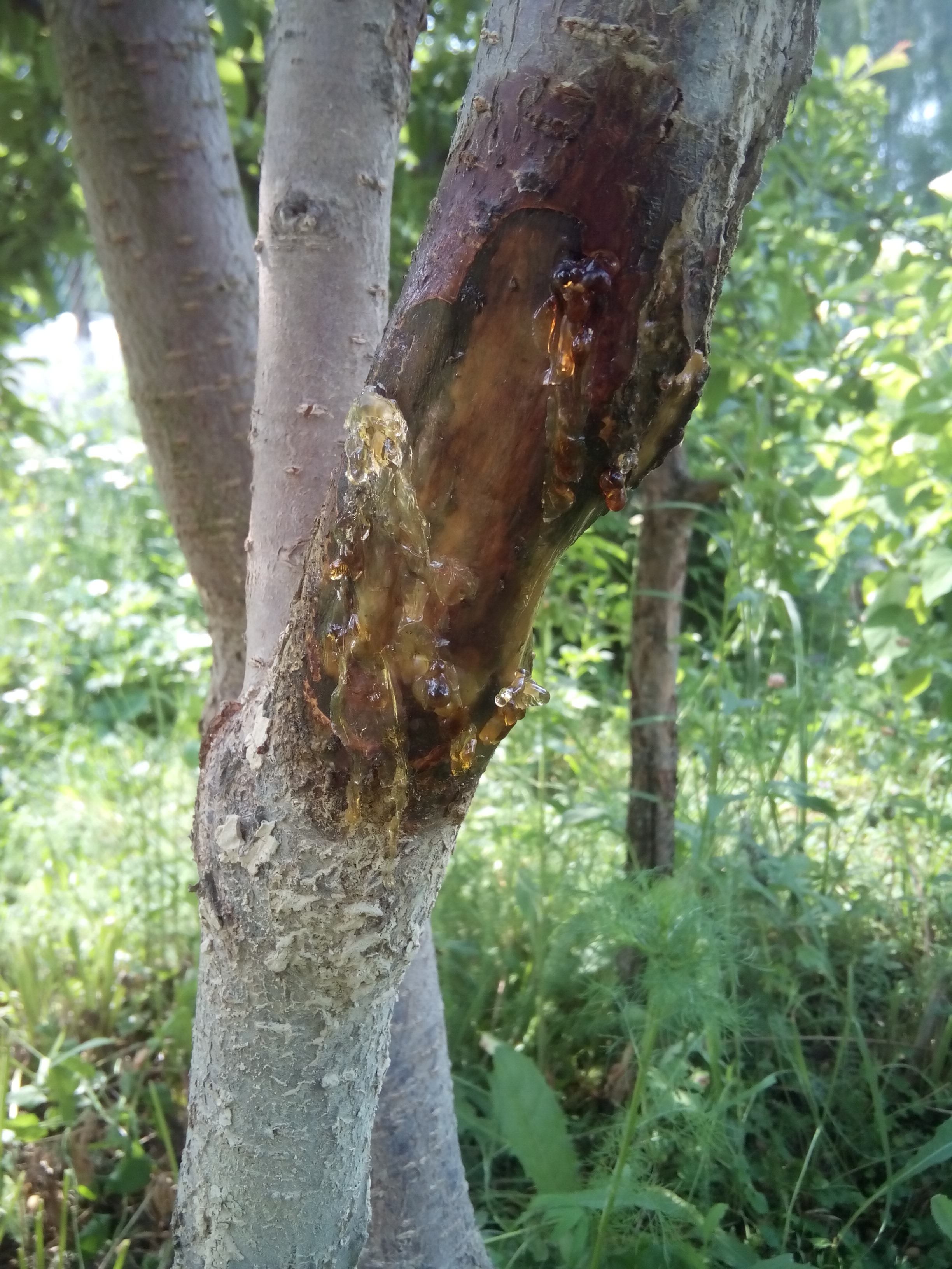На сливе пошло камедетечение, недели две назад зачистили все до здоровой древесины, натерла щавелем, дала подсохнуть и замазала тонким слоем садового вара.