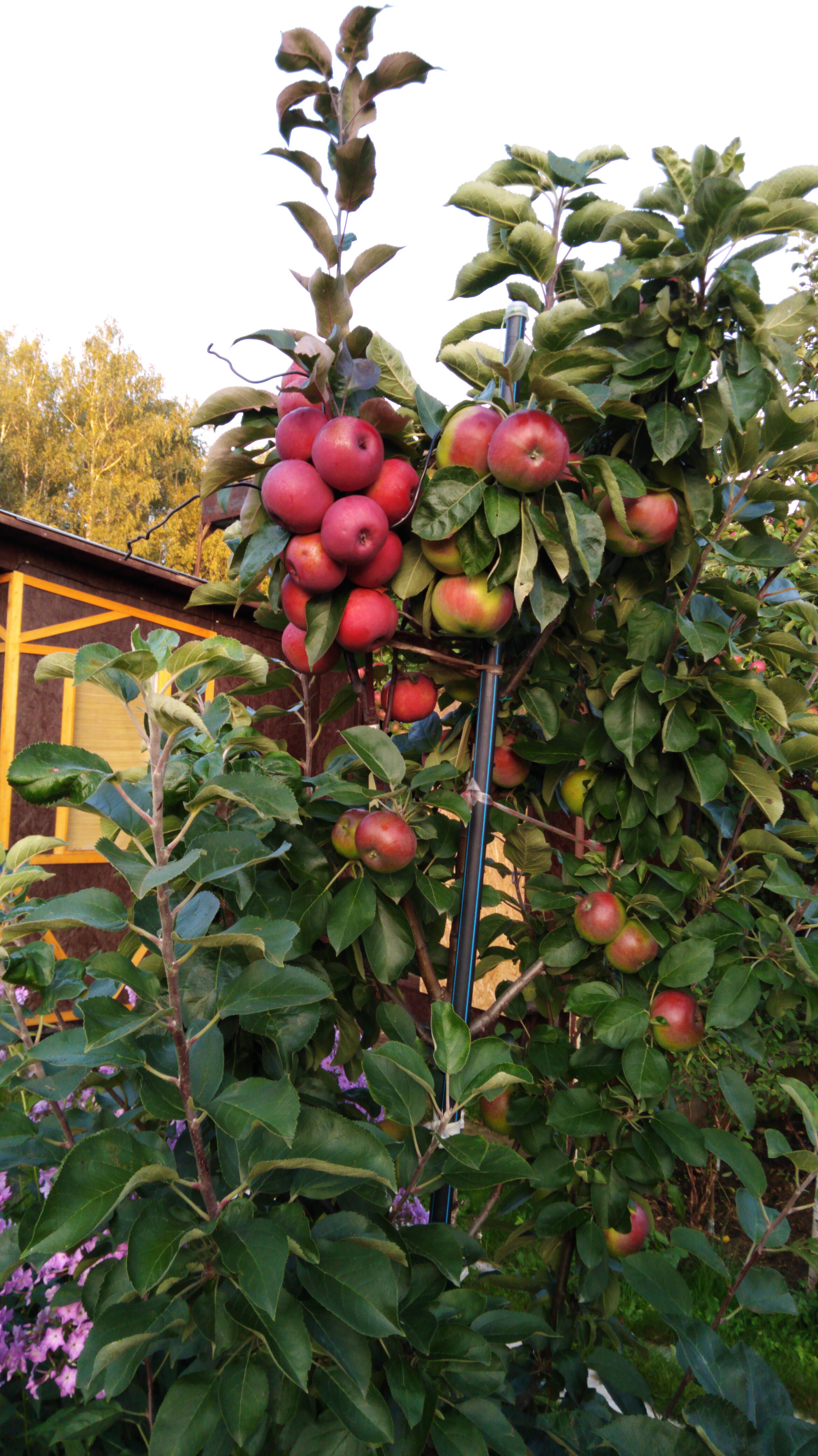 Колонна, но очень урожайная, получается - яблоки перезимовали и их на угощение хватило! Либо Дмитрию Алексеевичу (Бонифацию) эти яблочки самому не нравятся.