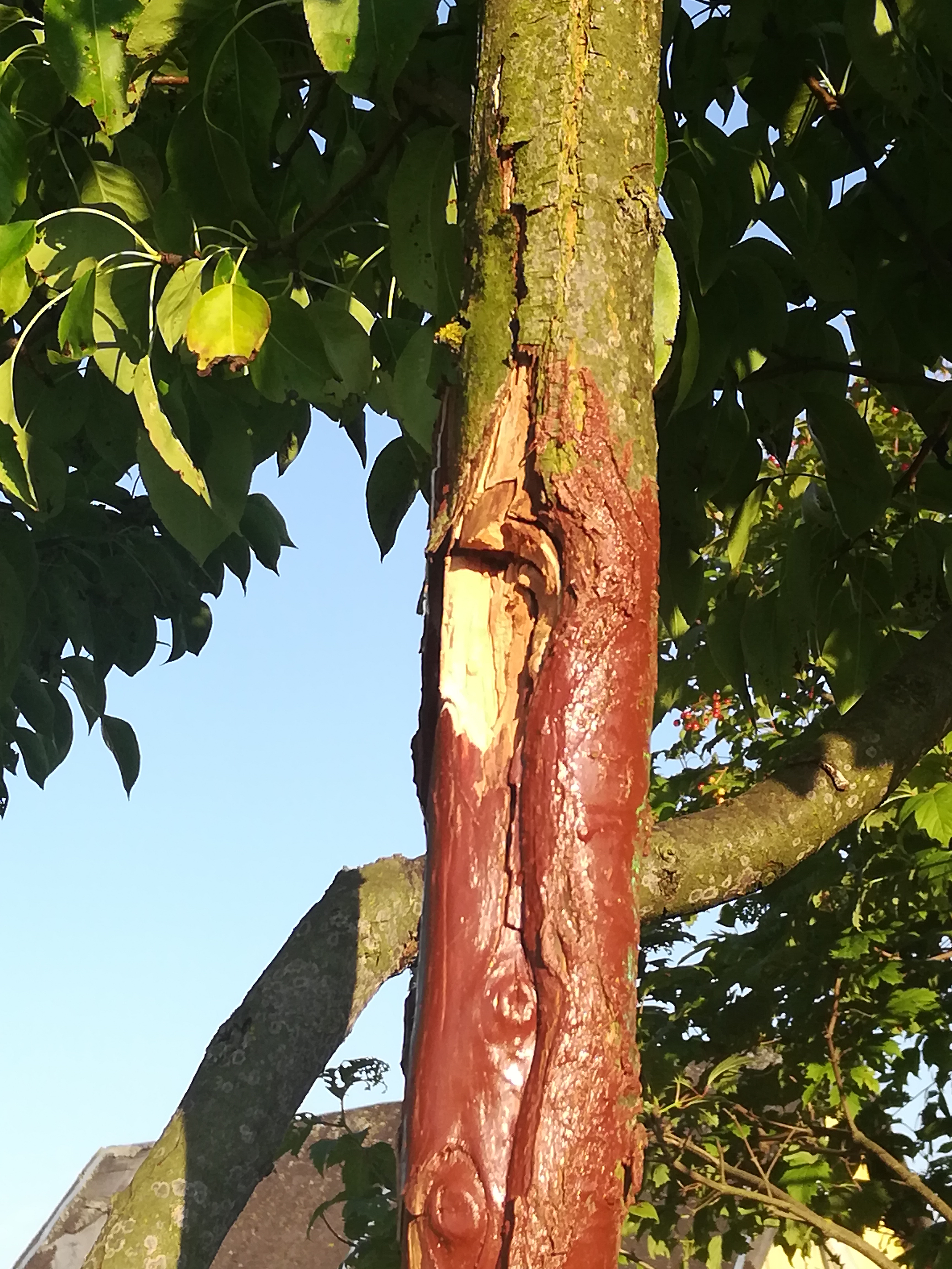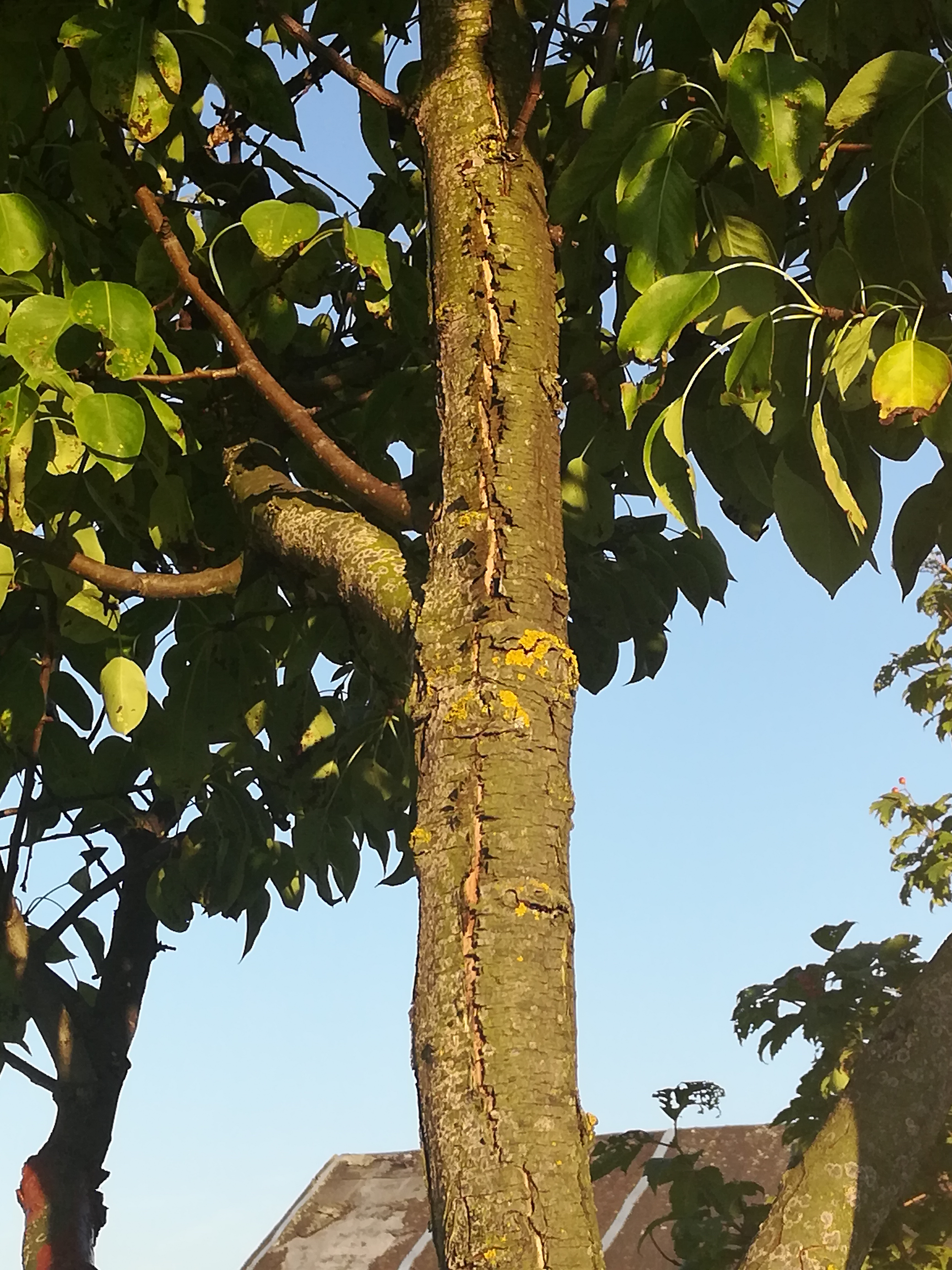 Какая то напасть, сначала клещ одолевал, теперь кора трескается. Похоже груше хана? Хотя груши висят.