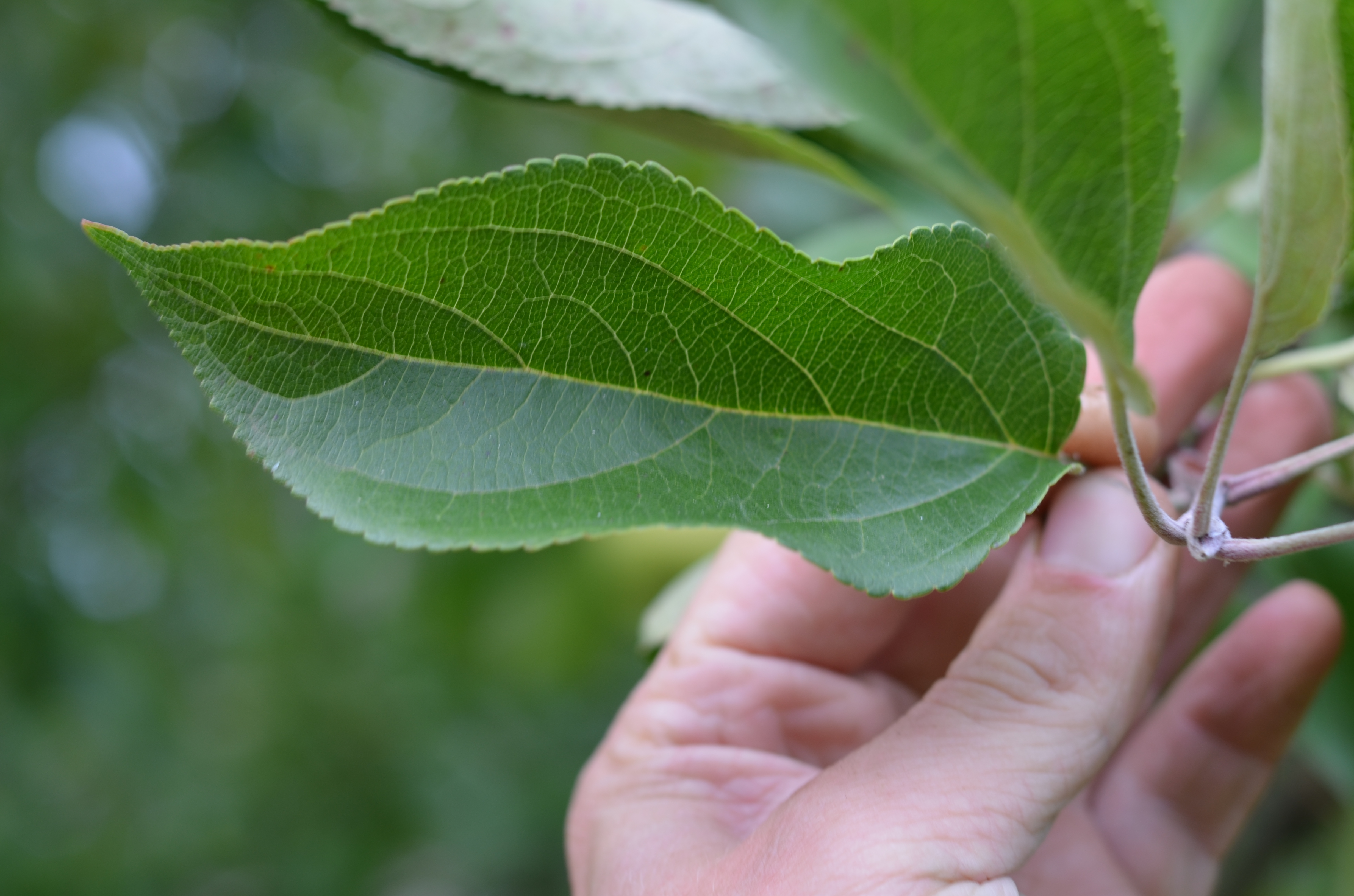и оборвал яблоки, тем более, что для раннеосеннего Коваленковского (для моих мест) где-то уже вполне достаточный срок для съема. Яблоки на плодоножках держались очень крепко, так что пришлось обрезать ножницами. Не утерпел и 8 сентября немного поврежденное птицами яблоко решил попробовать. Первое подозрение, что это другой сорт, появилось при разрезе яблока, т.к. семечки были еще абсолютно все белые. Когда откусил яблоко, то вкус моментально напомнил вкус дички - плотная мякоть, слабосочная полнейшая кислота без малейшего намека хотя бы на какие-то отдаленные нотки сладости. И тут я крепко задумался, а что же такое я посадил? Может быть, как исключение, такое возможно для Коваленковского при первом плодоношении, да и холодный май может сдвинул сроки и еще месяц нужно было подождать!? В тоже время Коваленковское даже недозрелое уже имеет сладкий вкус. Но, скорее всего, это позднезимний сорт, которому еще как минимум месяц нужно доходить на дереве до кондиции. Хочу спросить совета у знатоков, может кто-нибудь определит сорт? О яблоне могу сказать следующее: растет быстро; скороплодна; крона склонна к загущению; листья не яркие, где-то нейтрально зеленые ближе к светлому, можно сказать редкие; довольно устойчива к грибным болезням (без обработки в этом году всего несколько листочков "поддались" парше и ржавчине). Хочу добавить, что яблоки немного приплюснутые с выраженной ребристостью.