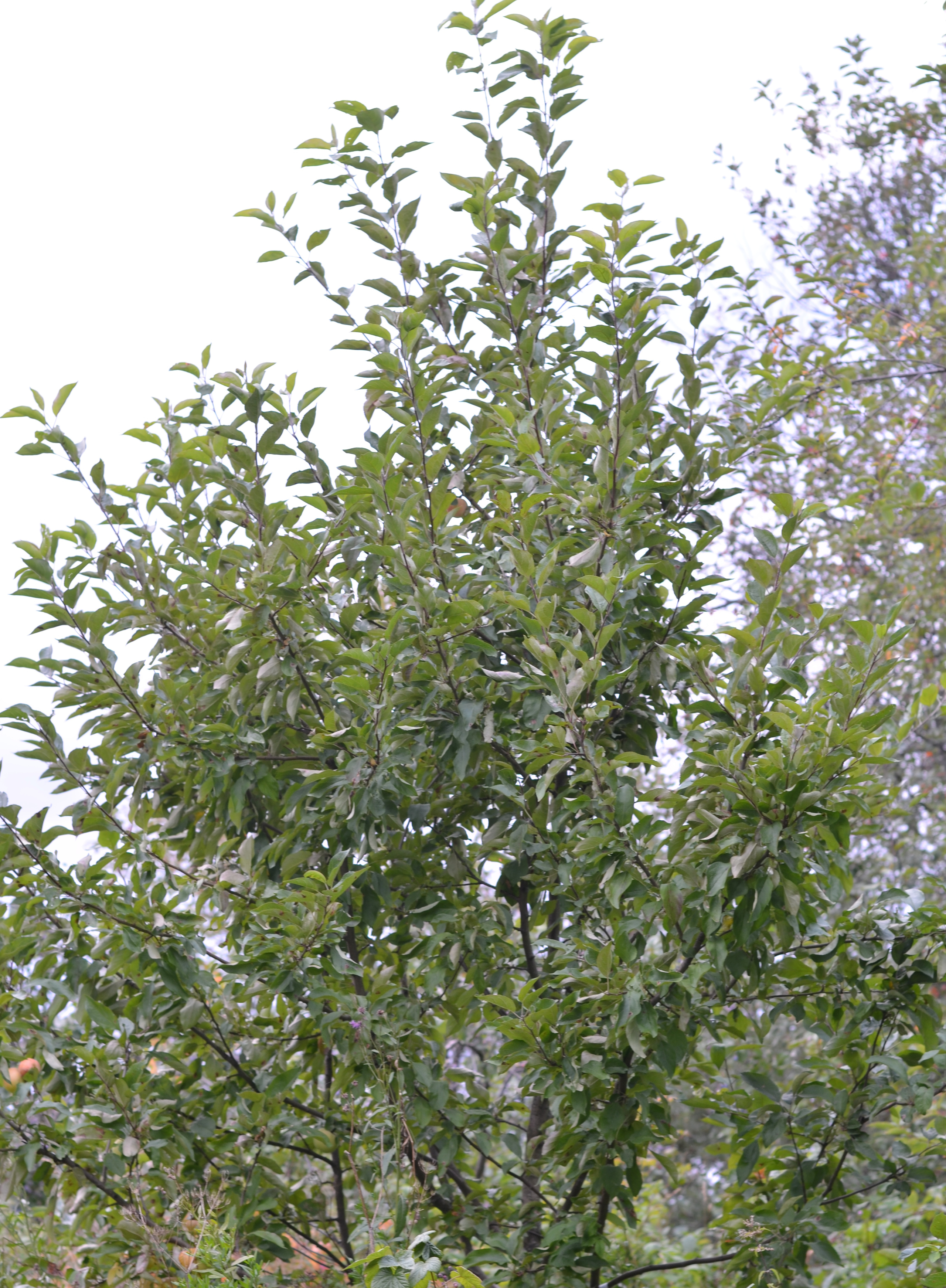 Вероятнее всего что-то из ассортимента питомника "Сады Урала". Попробовал упавшие яблоки - еще не созрели, во вкусе преобладает кислота. Ветви, отходя от ствола, поднимаются вертикально, листья удлиненные.
