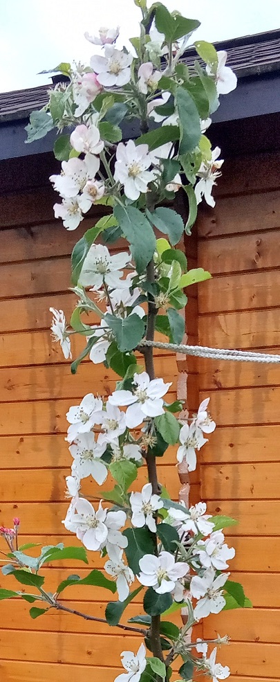 В июле прошлого года посадил двухлетку как Коваленковское. Весной этого года яблоня зацвела и подарила два яблочка. К концу лета птицы уже потихоньку начали пробовать верхнее яблоко и перед отъездом с дачи 5 сентября решил не рисковать "урожаем"