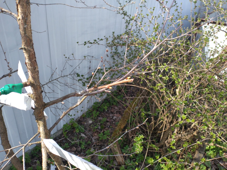 Майские прививки. Перепривил пересорт, предположительно Раннее алое. За кору и врасщеп нормально, вприклад приживается медленнее, наверно более тонкий слой коры надо срезать. Из 12 прижились все.
