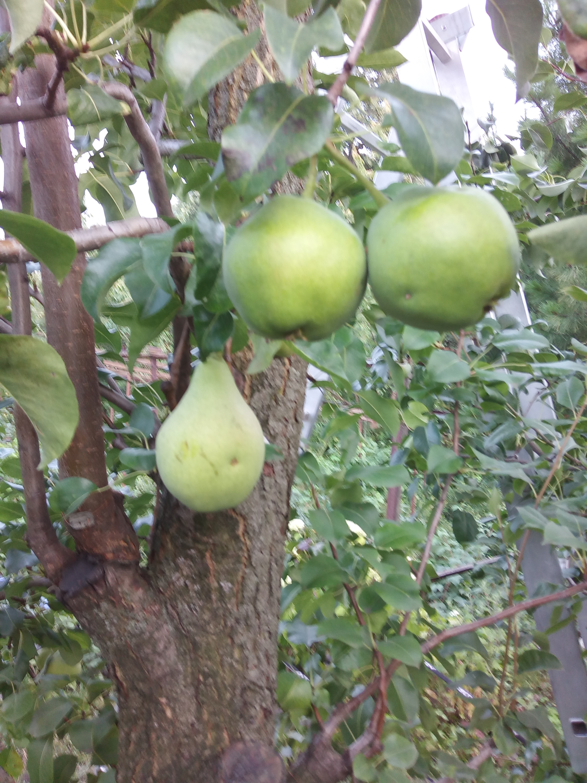 Интересно нынче ведет себя Кудесница. Первые плоды упали уже давненько, а те которые висят продолжают набирать размер, но только в ширину, уже на себя не похожи. Чем дальше, тем крупнее груши падают...