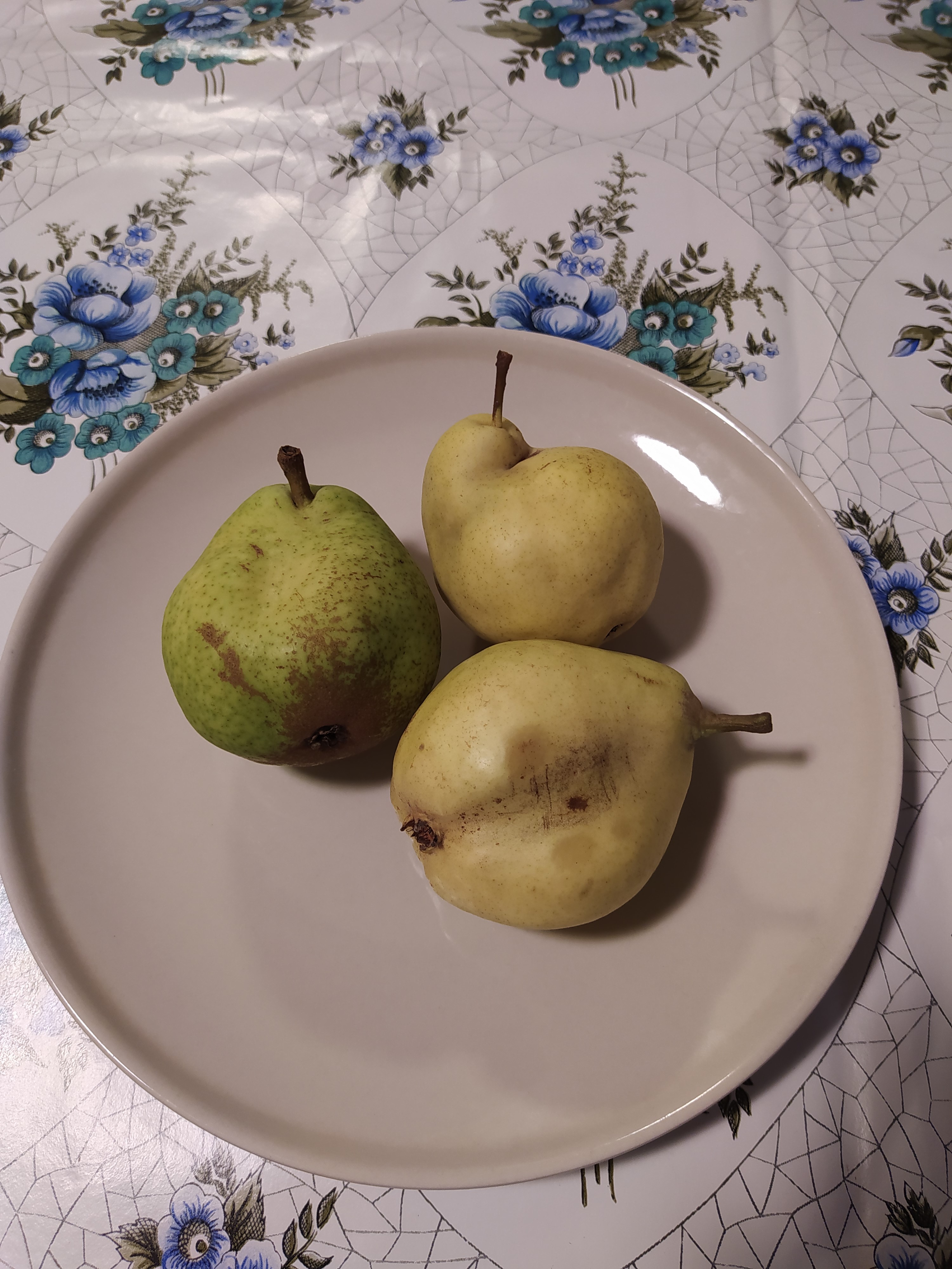 Первое ,это не стоит задача вырастить ботанический сад и все сорта не нужны а нужны лучшие.По Лагодной когда то вычитал/Чемпион по гниению плодов на дереве/и после этого она мне не интересна. У вас на снимке два плода немного деформированы У кого какие предположения от чего.Энди Таккер писал(а): ↑02.09.2020, 12:40 Что-то давно никто не пишет про Лагодную, даже коллеги из Беларуси. Неужели настолько непримечательный сорт? Лет пять назад черенок Лагодной мне дала Настя из Мичсада, когда я попросил ее "хороший летний сорт груши". Видимо там его ценят. У меня созрела недел назад. Хранится неважно, но вкус неплохой.