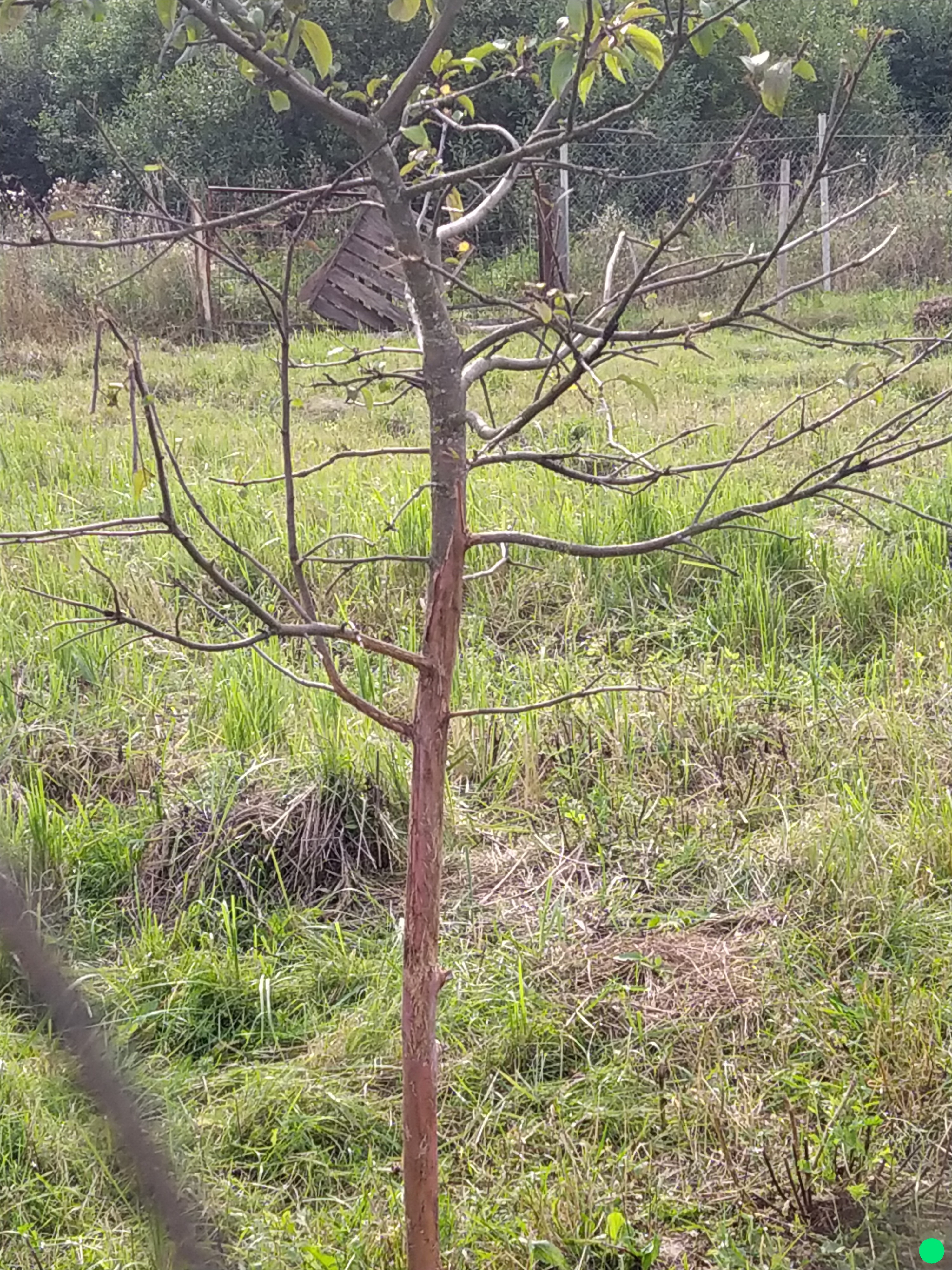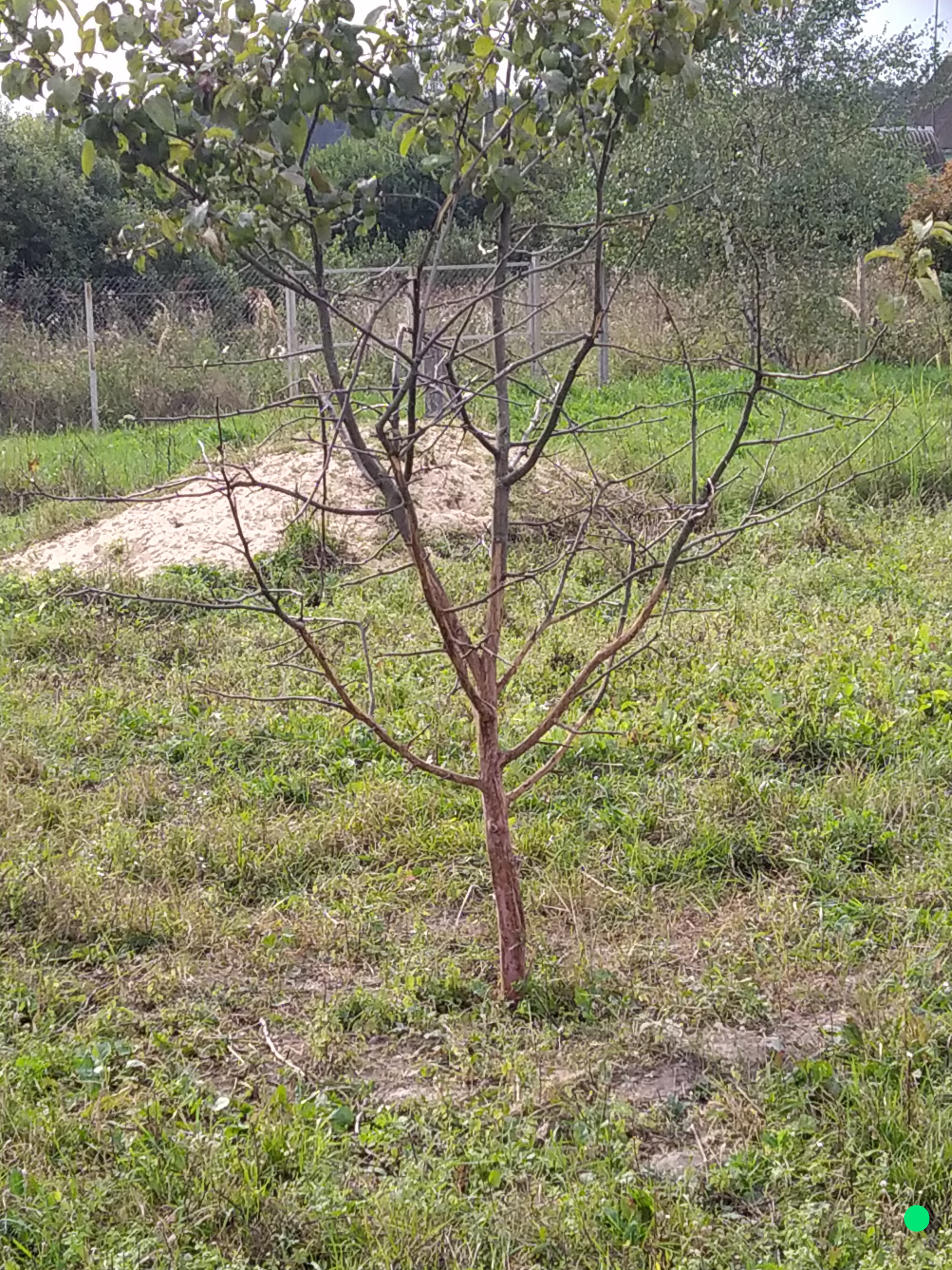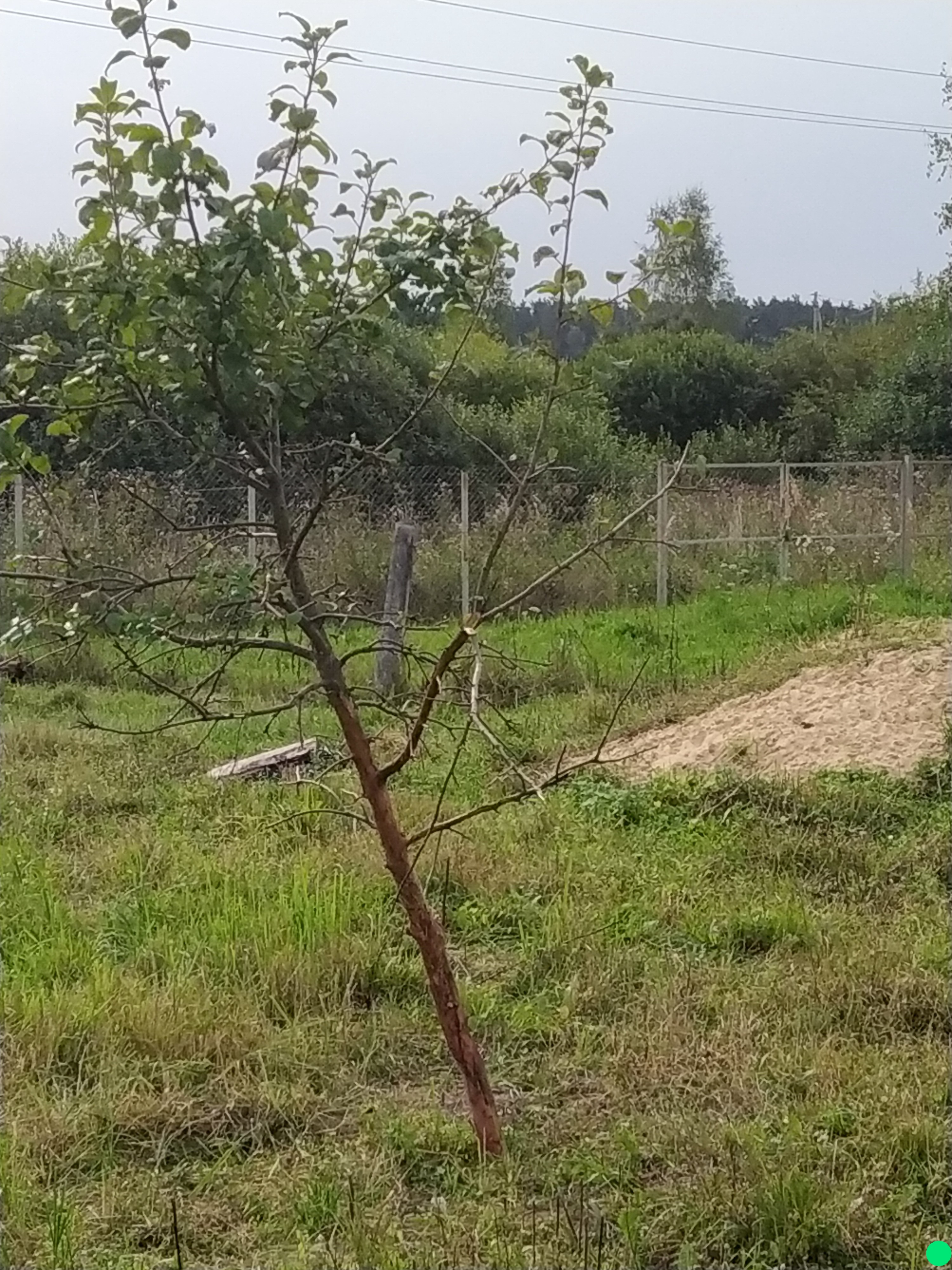Соседи продали участок весной. Новые хозяева привезли трех коз и козла. Сами приезжают пару-тройку раз в неделю, остальное время животные гуляют по участку. На фото - молодые, плодоносившие уже, соседские яблони. Листья остались только наверху, внизу всё съедено козами и кора снята до высоты метров полутора. Когда козы стараются достать листья повыше, они запрыгивают на ветки, те обламываются, отдирая кору и древесину от ствола. Это я к чему...да не знаю к чему. Как пример небольшого ума и жестокого обращения с яблонями.