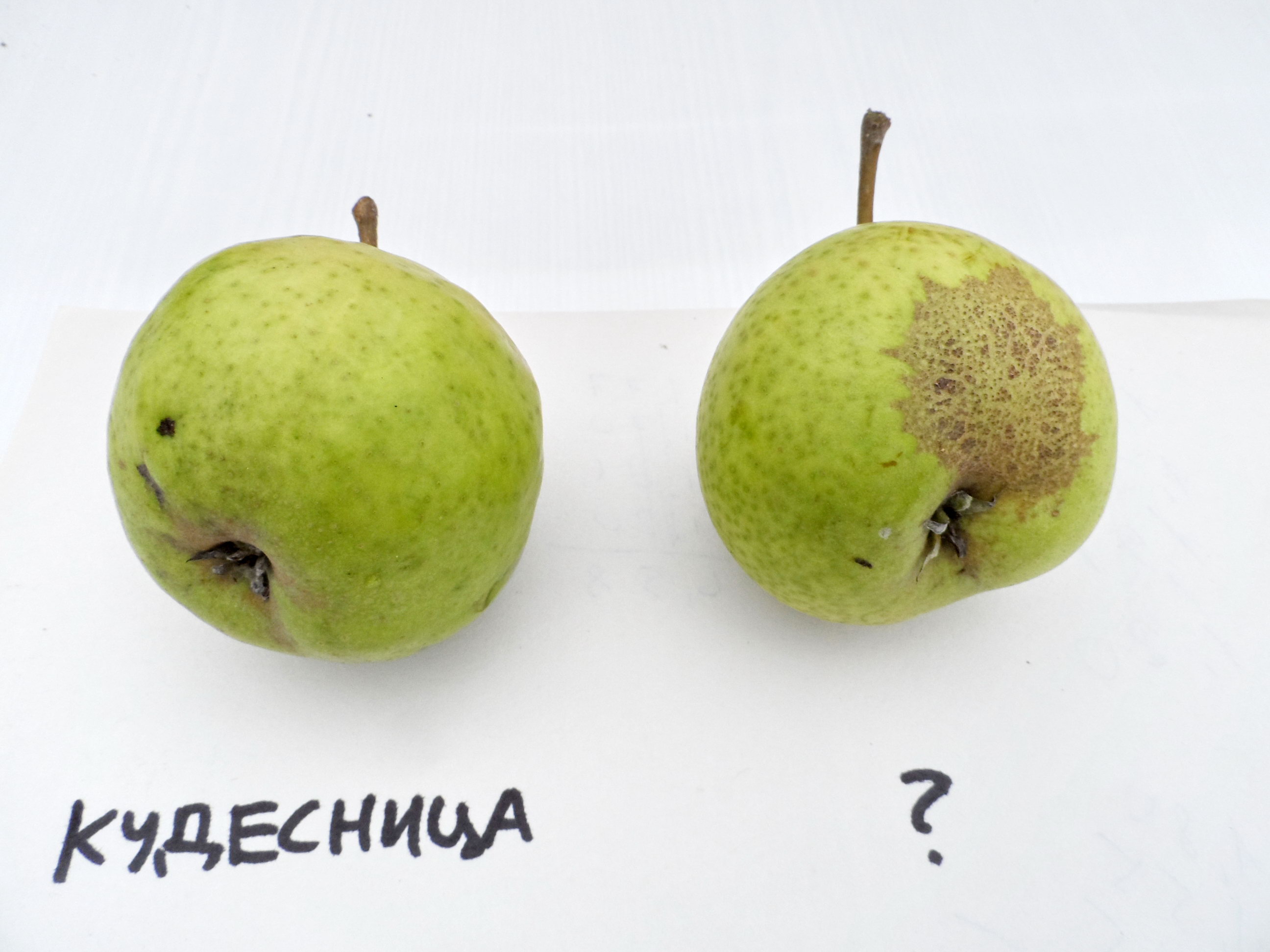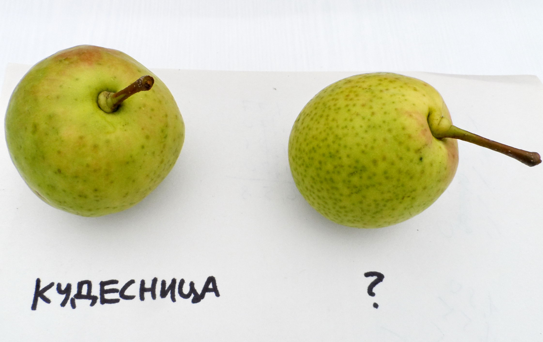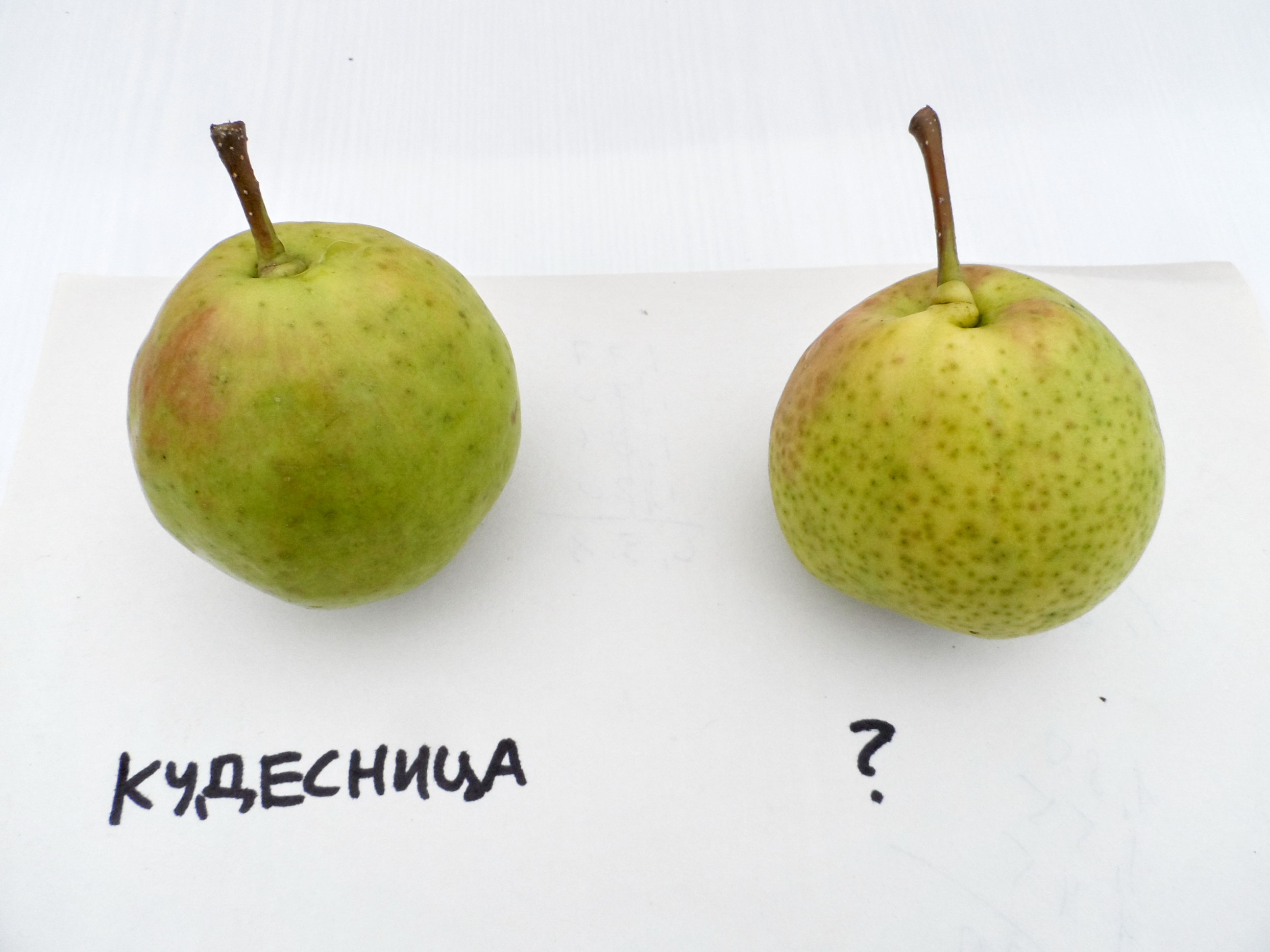 Справа - той груши, которая требует определения. Ув. сансад, такой ли хвостик у вашей Кудесницы?