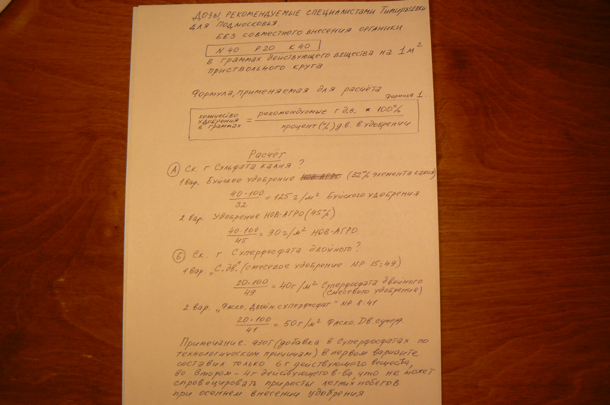 Игнорируем азот сложных удобрений, потому что в рассчитанных дозах азота мало, во-вторых, нужен для осеннего роста корней(так у Камшилова в "Практических советах по садоводству" и у Е.В.Колесникова "Советы садоводам").