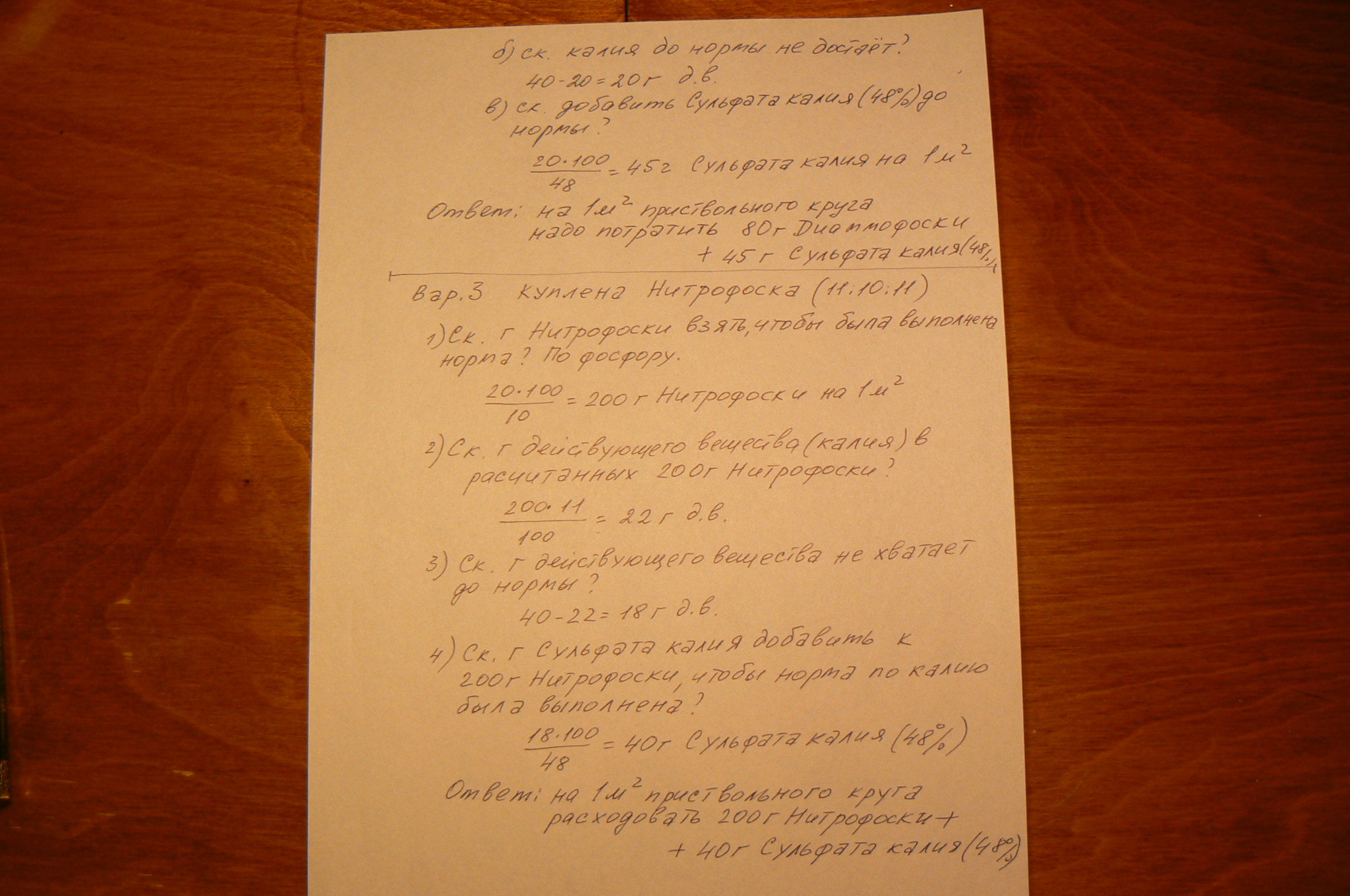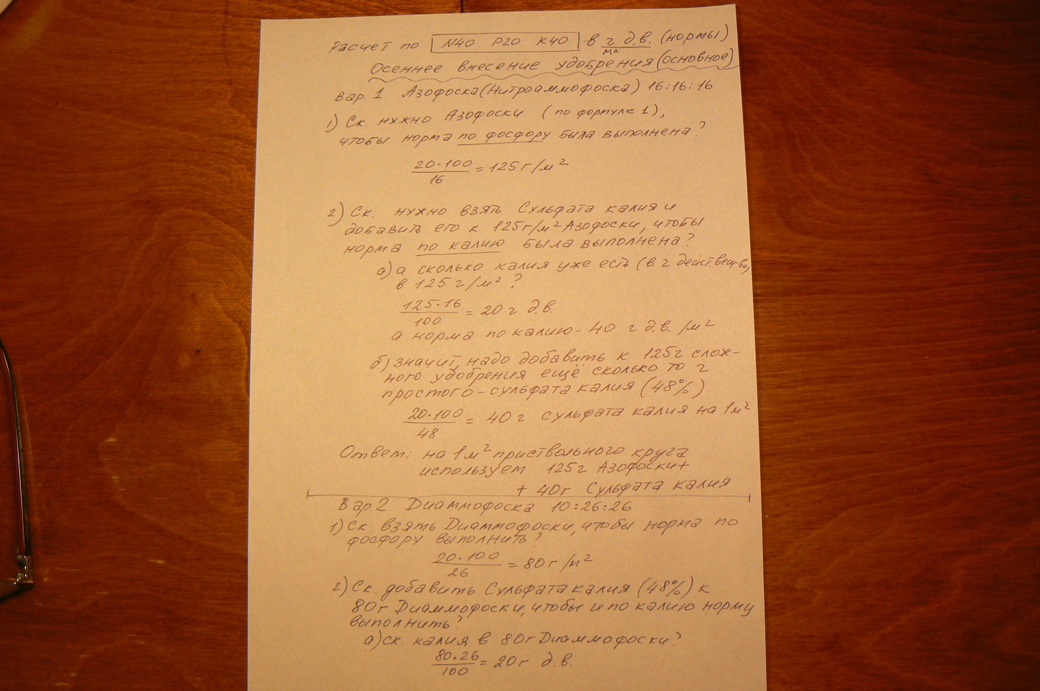 Подсчёт доз простых и сложных удобрений.