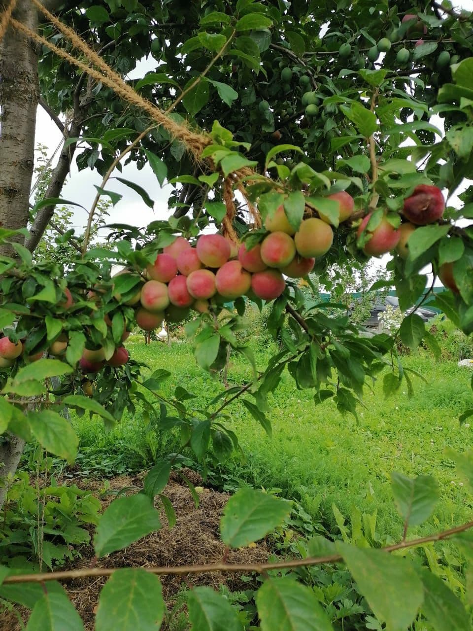Вот и у меня одна КК после супер урожая нацелилась уйти на радугу. Привита на корень полудикой сливы. Корнесобственная КК в два раза мощнее, выше. Урожай был чуть умереннее.