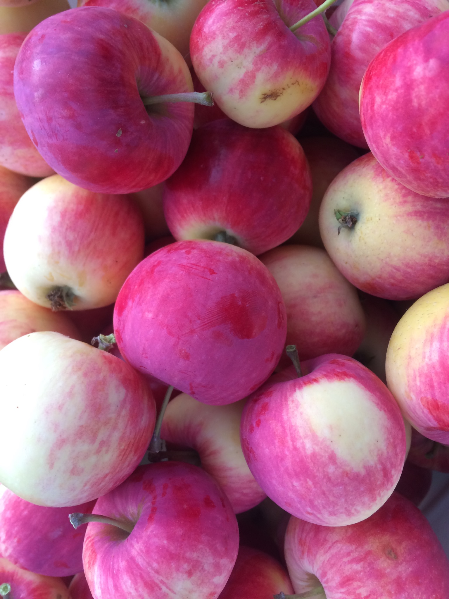 На днях местный несетевой супермаркет удивил яблоками. Под наименованием "яблоки Малиновка, Россия" там лежало вот такое чудо. Самые мелкие грамм по 200, крупные - за 500. Сочные, хрустящие но не жёсткие, вкусные. Может, кто знает, что это за сорт?