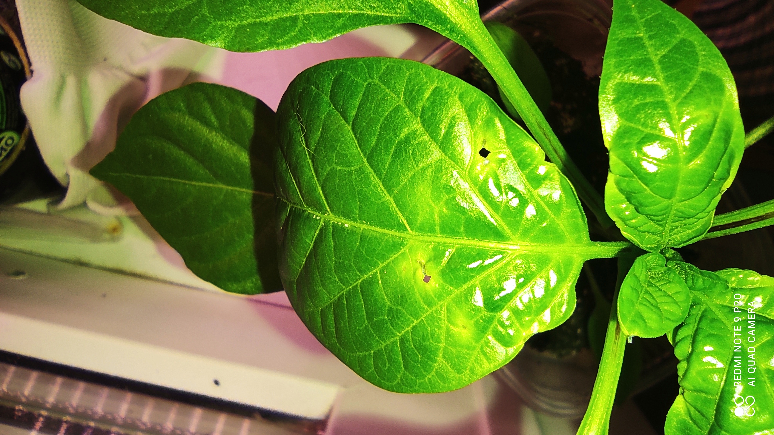 Однажды из своих семян перца Нежность выросли, листья были со светло-зелеными штрихами. Думала вирус какой подцепила, но обошлось, остальные перцы росли нормальными.
