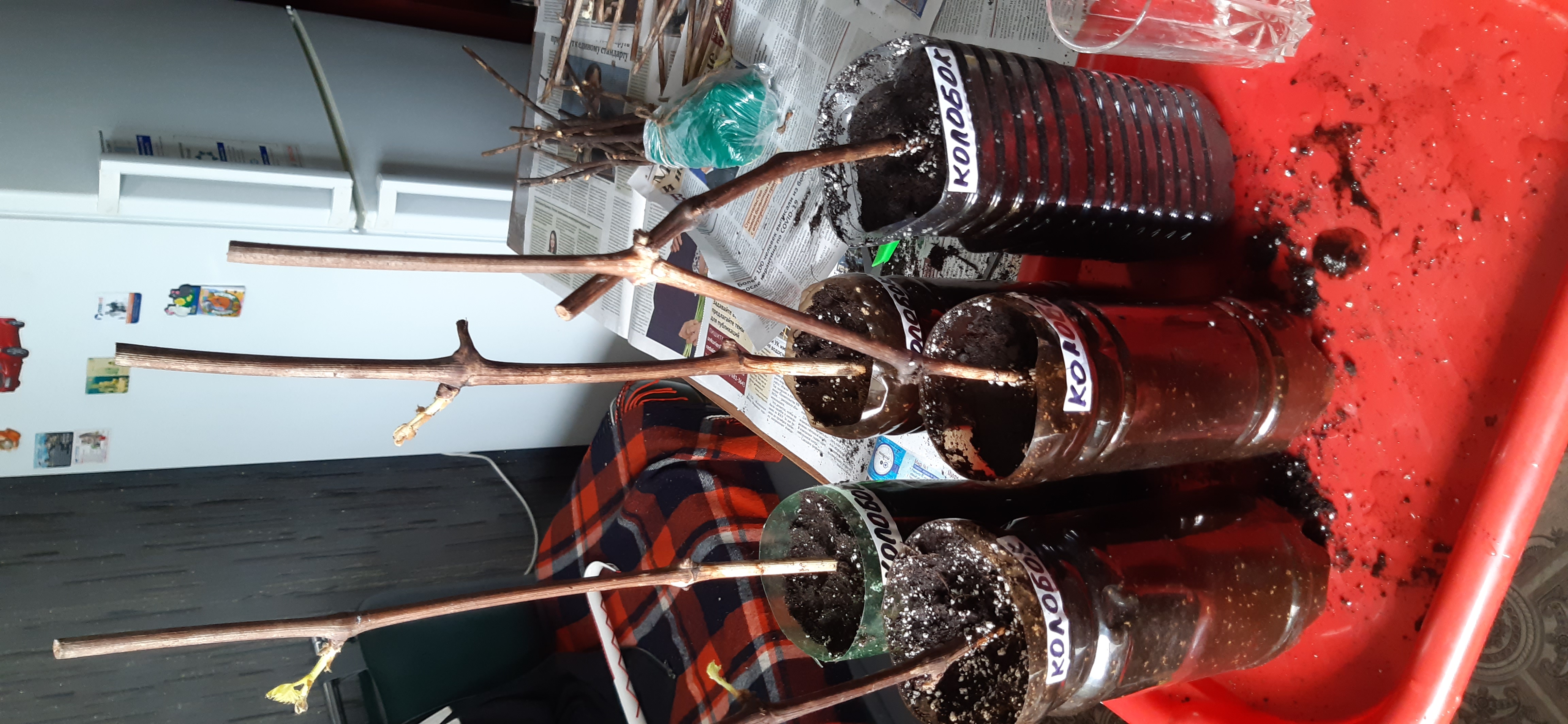 Потом купить пустые баклажки, землю, высадить каждый, как родного.