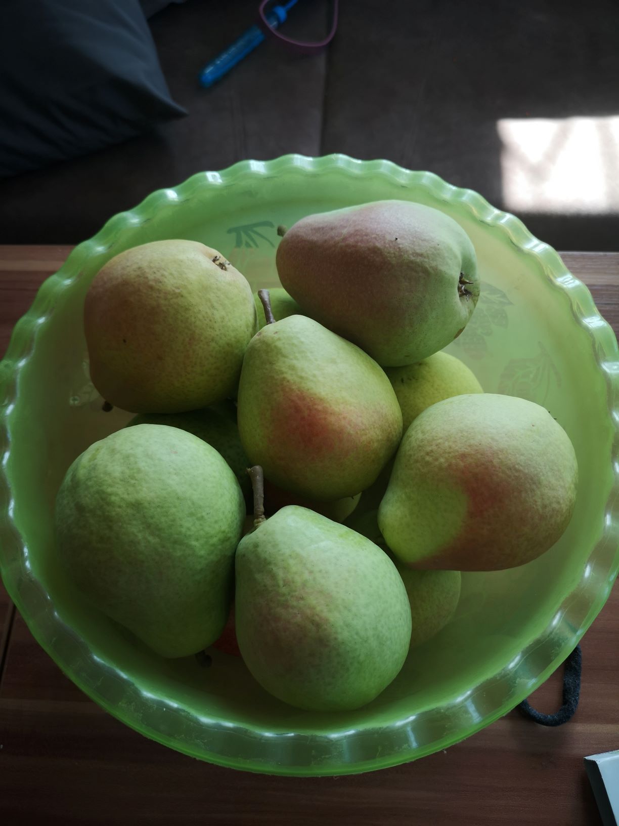 В 2019-м снимал плоды 27 августа, самые крупные и пожелтевшие были уже на грани, а вот зеленые с красным бочком постепенно доходили и на мой вкус были 4,6 балла.