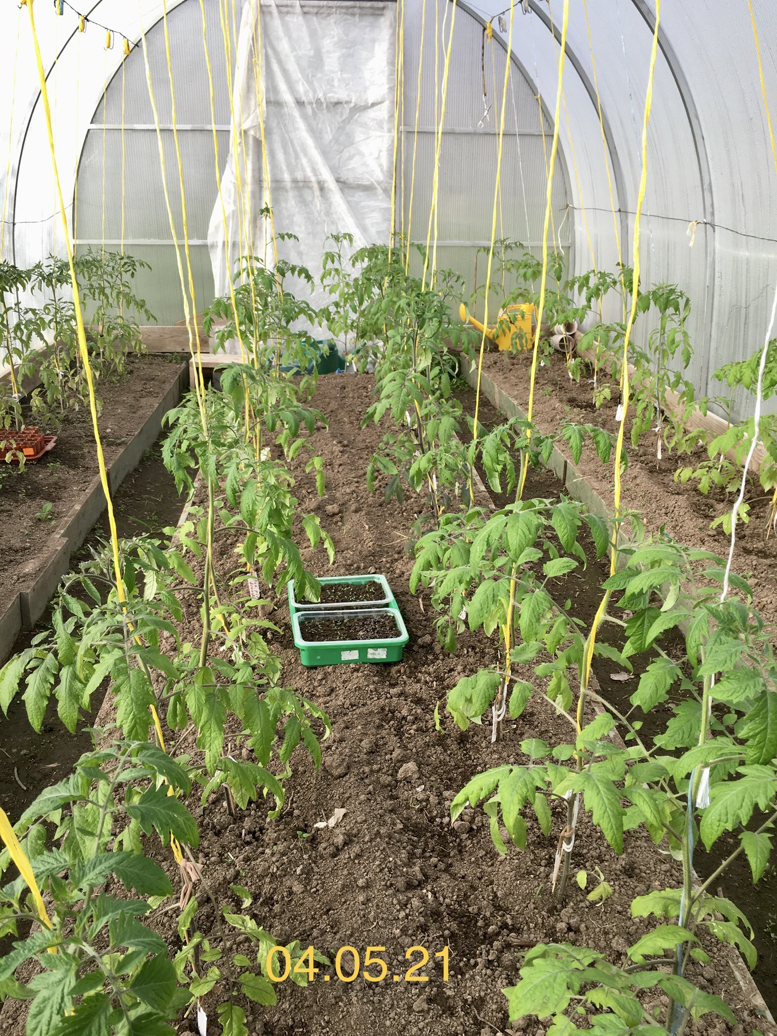 Я выставила свою рассаду в стеклянную теплицу 27 апреля. Поставила ёмкости на пенопластовые листы, расставила свободно и накрыла лутрасилом-17, перекинув его через проволоки для подвязки. Получился такой хорошенький шалашик...Томатики живы-здоровы.