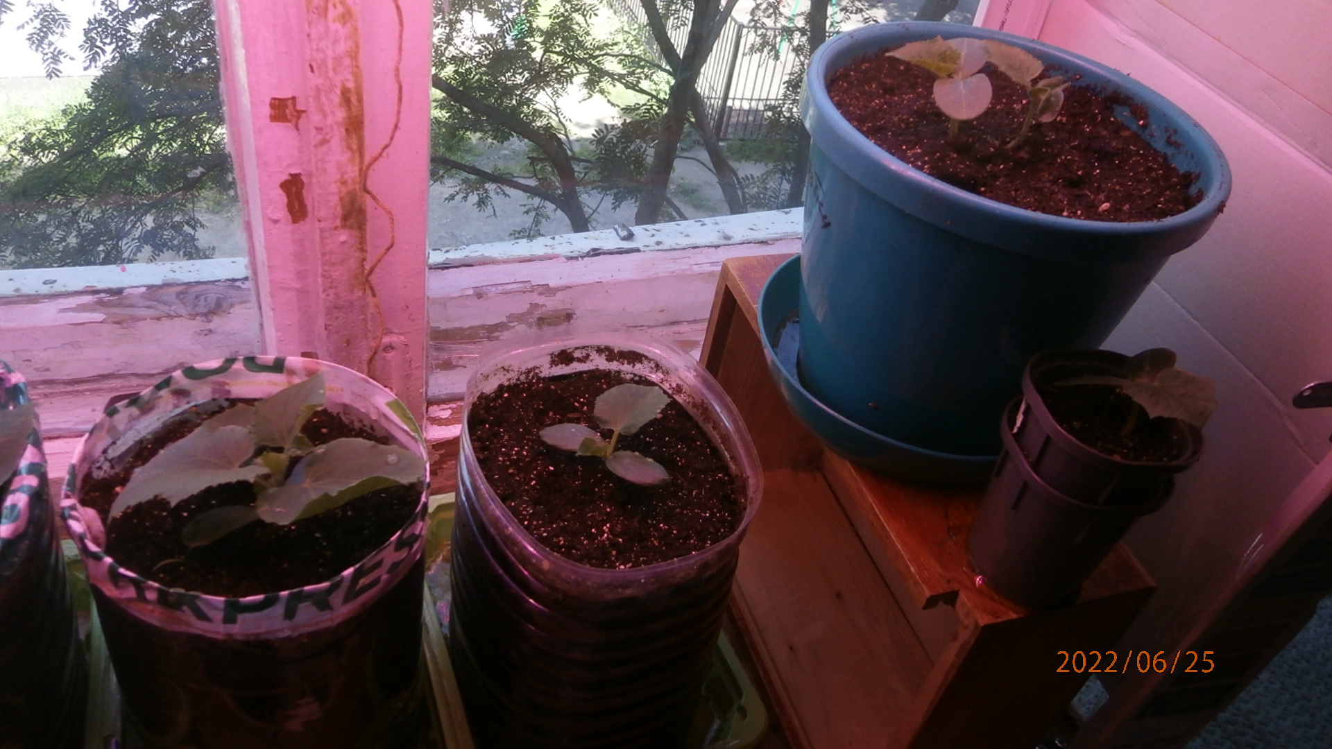 Слева , в квадратном стаканчике ,всходы Колибри, справа-Балконный. Через несколько дней перевалю на ПМЖ.