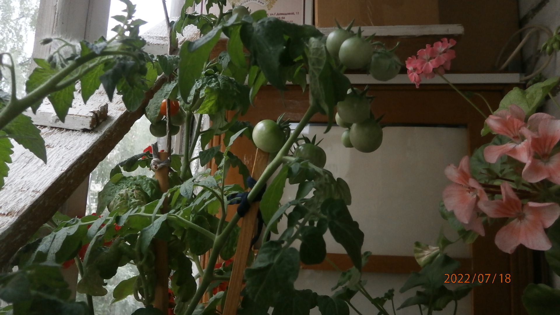 Потихоньку растём. Вот и первые помидорки скоро будут...