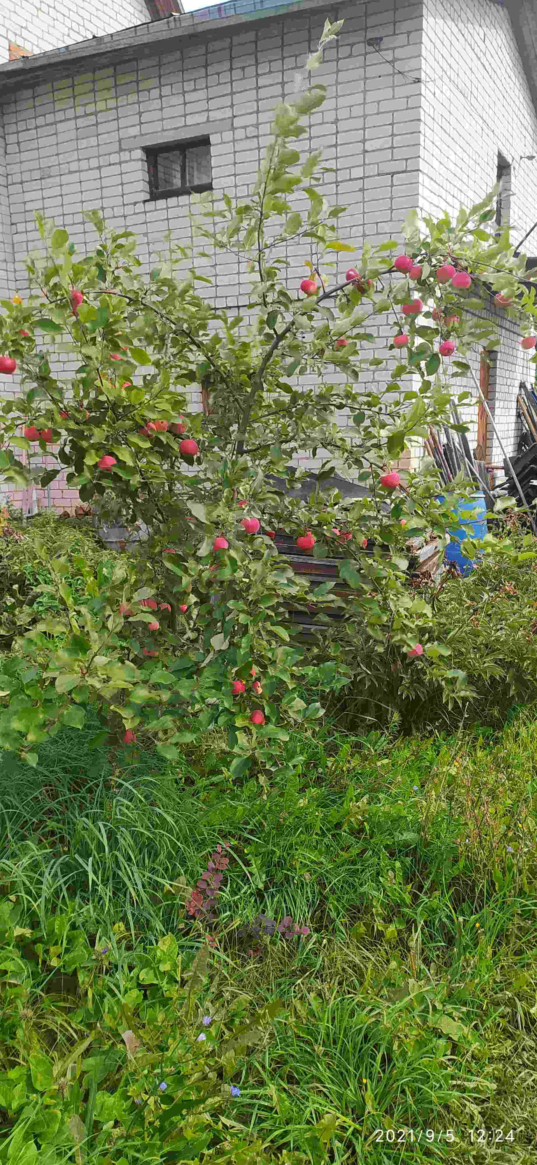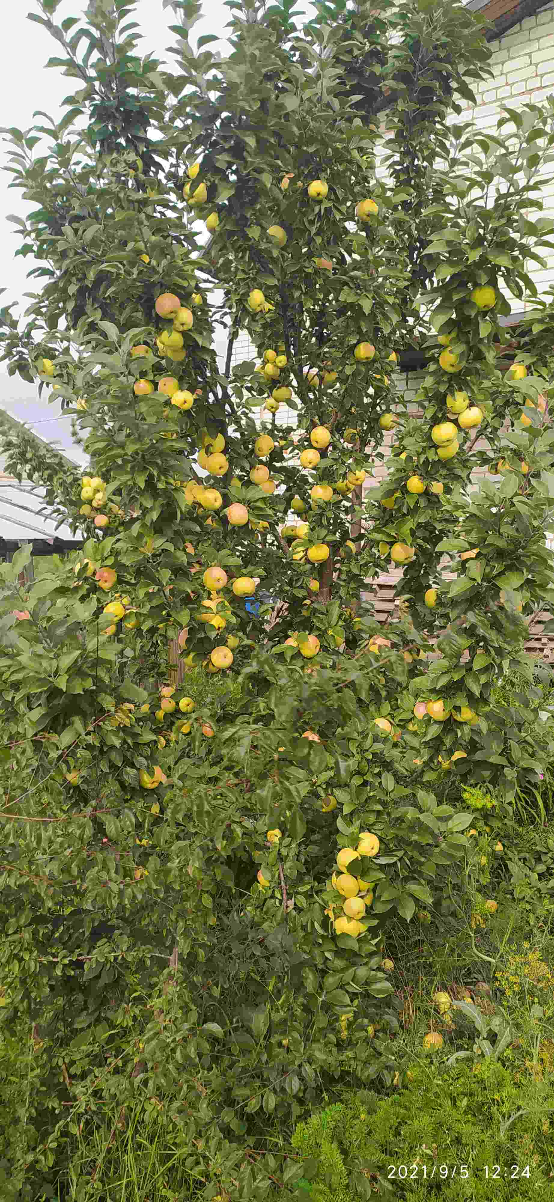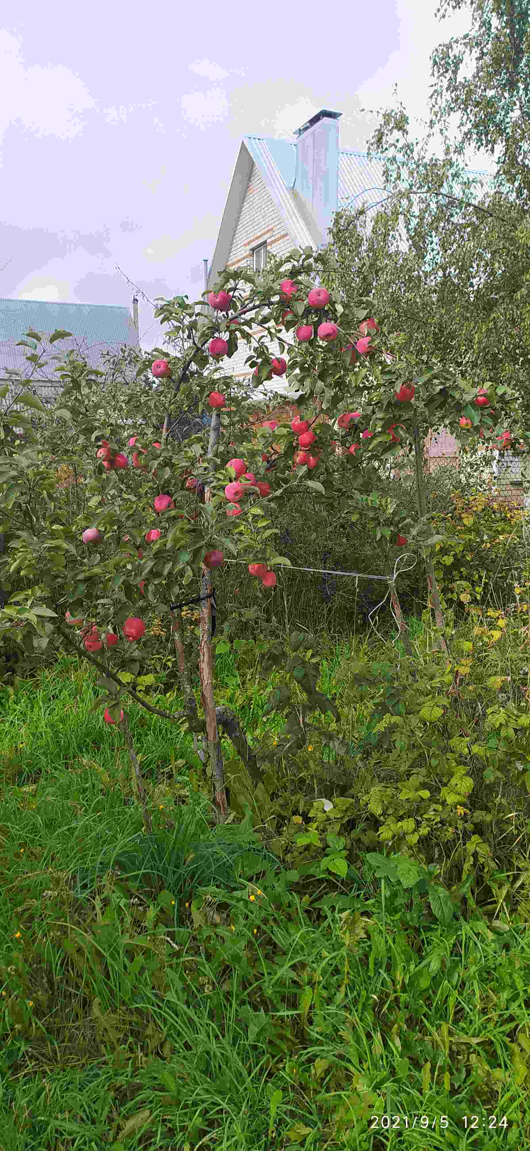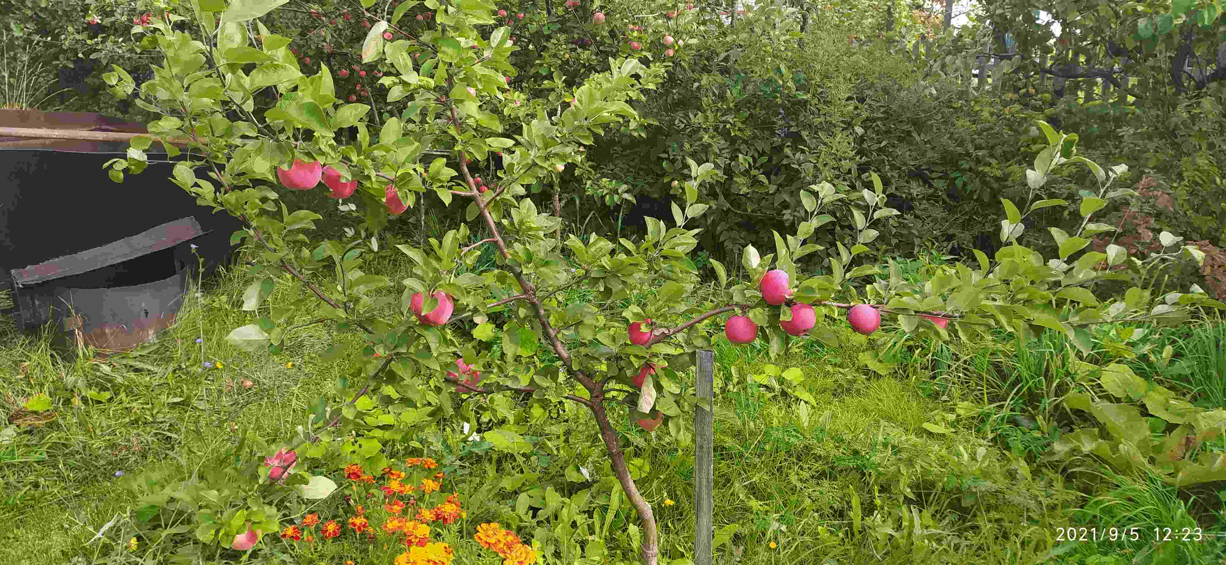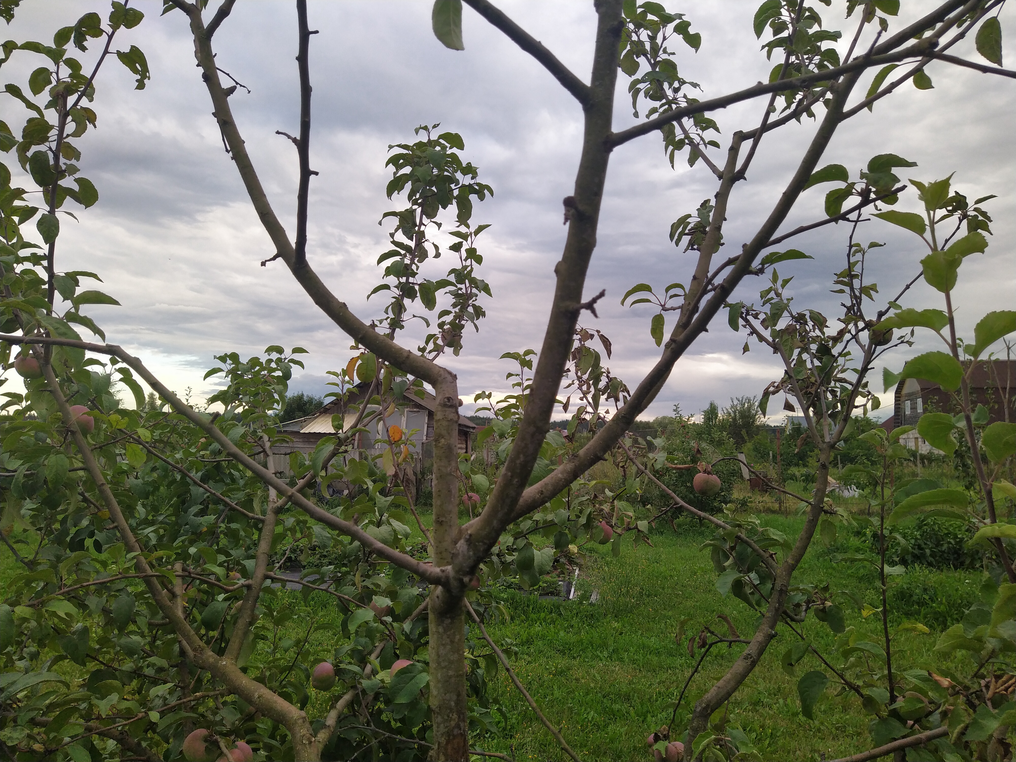Рождественское в моём саду - две яблони - с плодами. Сейчас активно яблоки укрупняются.