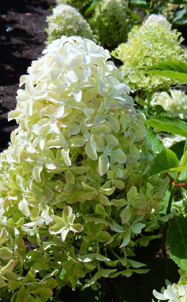 Куст компактный, высотой до 120 см, ровный. Все побеги одной длины. Цветки крупные, стерильные, чисто-белые в нижней части соцветия, зеленые – в верхней. Соцветия широкопирамидальные, остроконечные, плотные. Цветёт обильно в июле-сентябре. Побеги не требуют опоры. Место солнечное или полутенистое. Почва плодородная, кислая, влажная, дренированная. Зона 4 (до -29°). Очень крупный отдельный цветок.