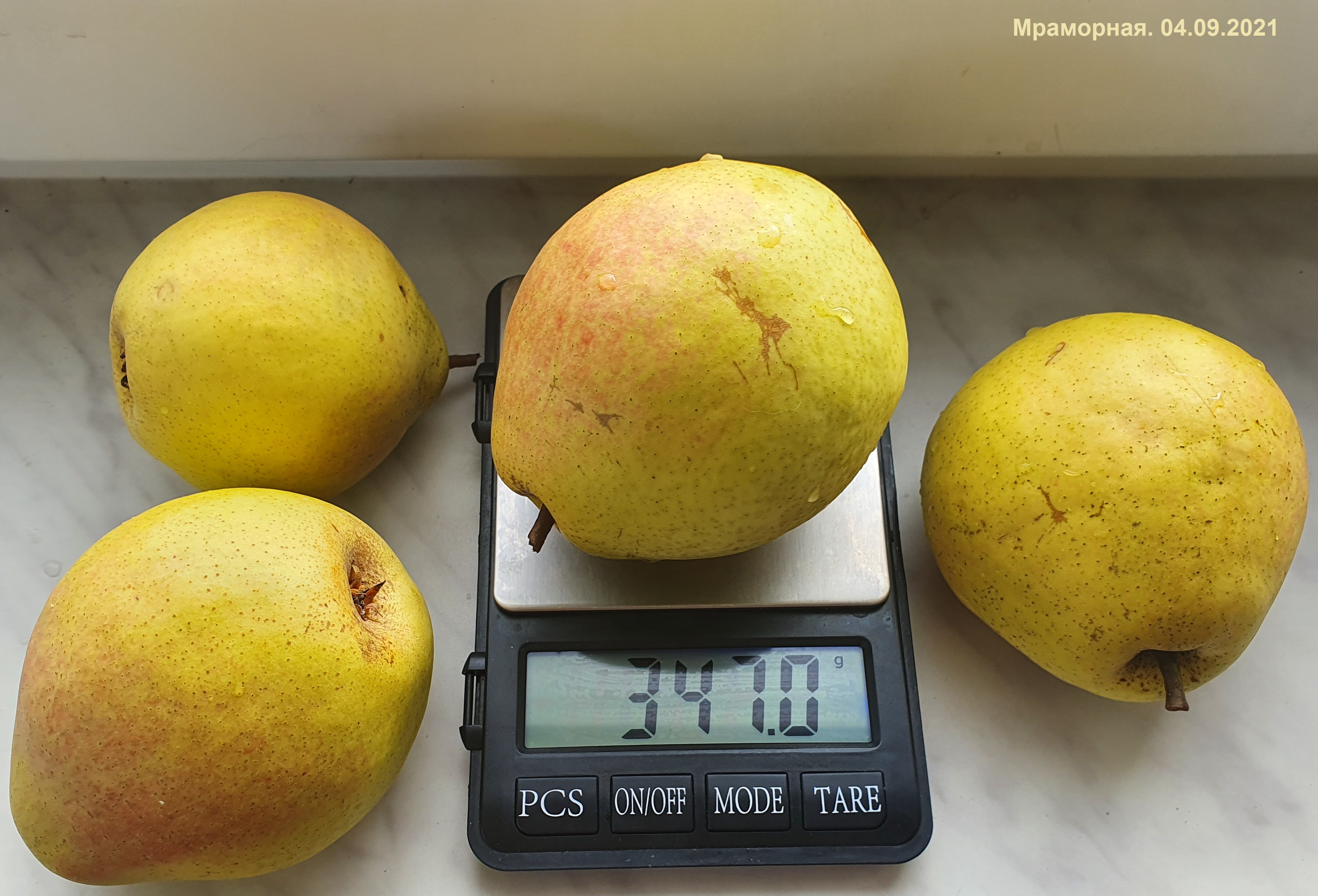 В этом году пожалуй лучше всех по размеру и вкусу удалась Мраморная. Оценил бы как минимум на 4,7! Сочная, но не водянистая, в меру сладкая и очень вкусная. Второй год нормирую и вес поднялся от 250 до 350 гр. Самые крупные продегустировали осы и птицы, вовремя не обратил внимания. Средний вес плодов без нормировки существенно ниже - 180-250 гр. Внешний вид тоже важен. Тут по мне так все 5 баллов можно ставить (на солнечной стороне). С теневой стороны чуток попроще, но и там неплохо смотрятся. В общем для С-З Подмосковья удачно вызрели...