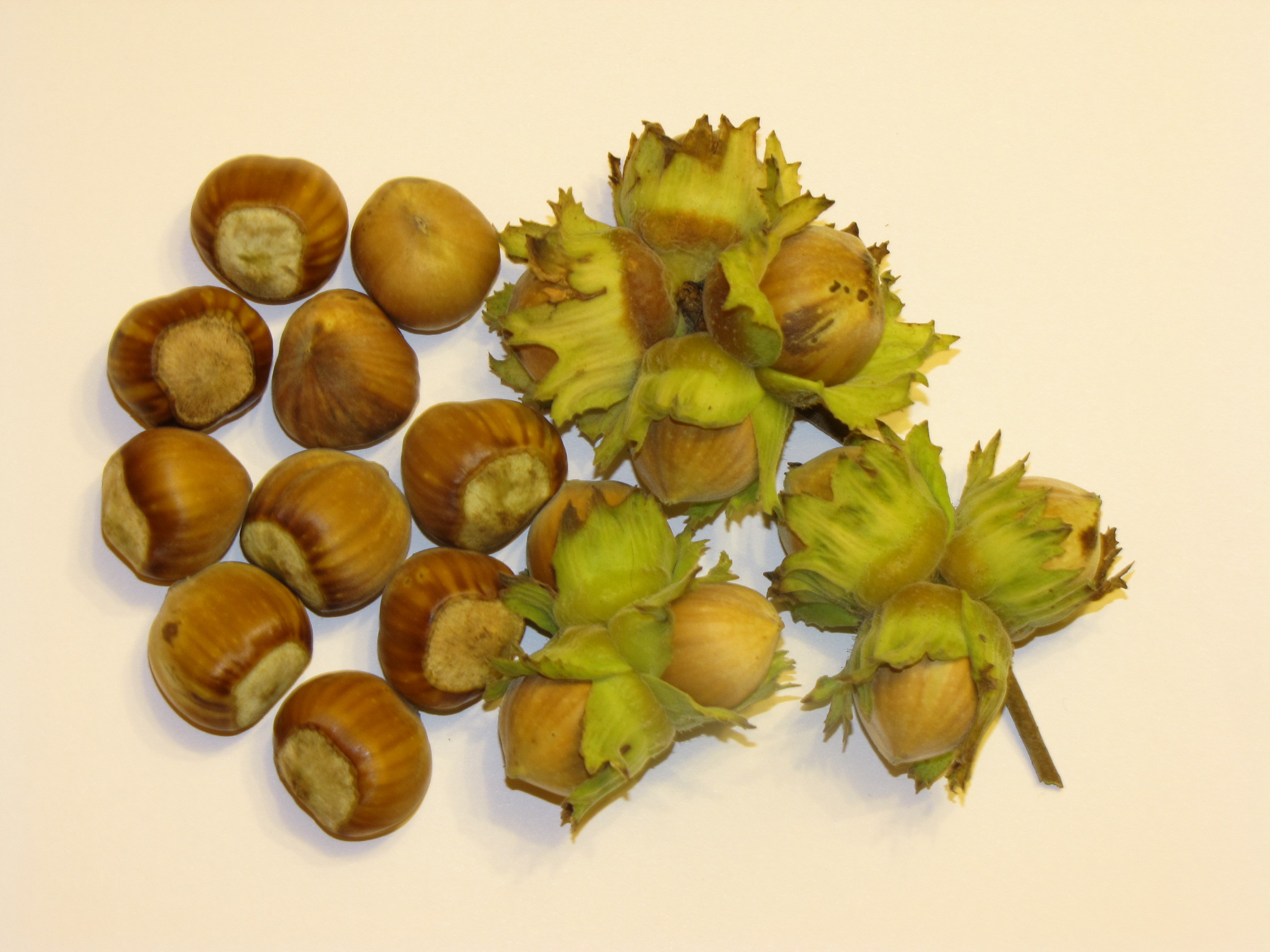 «Московский рубин зеленолистный» растет более мощным кустом, в этом году дал 50 орехов (продолговатых, с выпуклым донцем, масса 10 сухих орехов 35 гр, но наполненность ядра в орехе не полная, где-то 2/3, ядро покрыто коричневой шелухой, вкус лесного ореха).