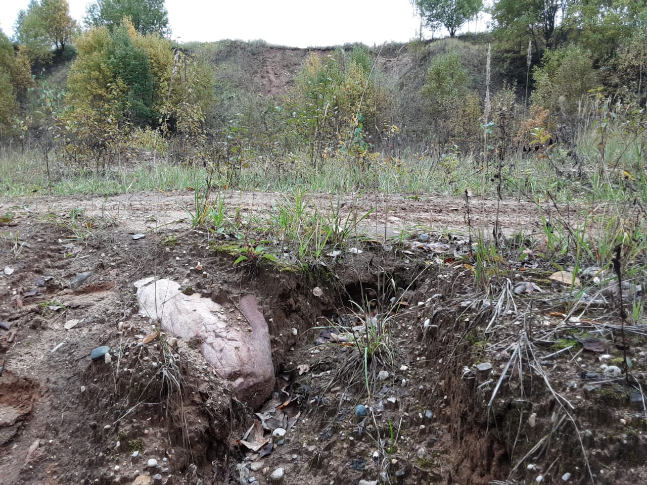 Разбиралась, как же камни по склону разложить, чтобы получилось, как в природе. Заметила на склонах оврагов и балок такие для окатышей моренного происхождения "закономерности".