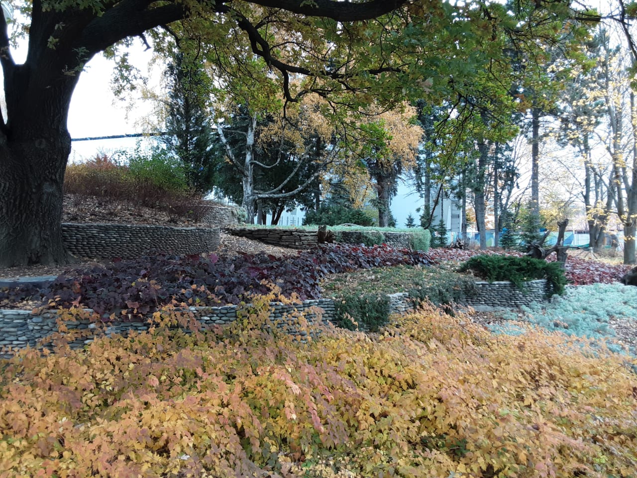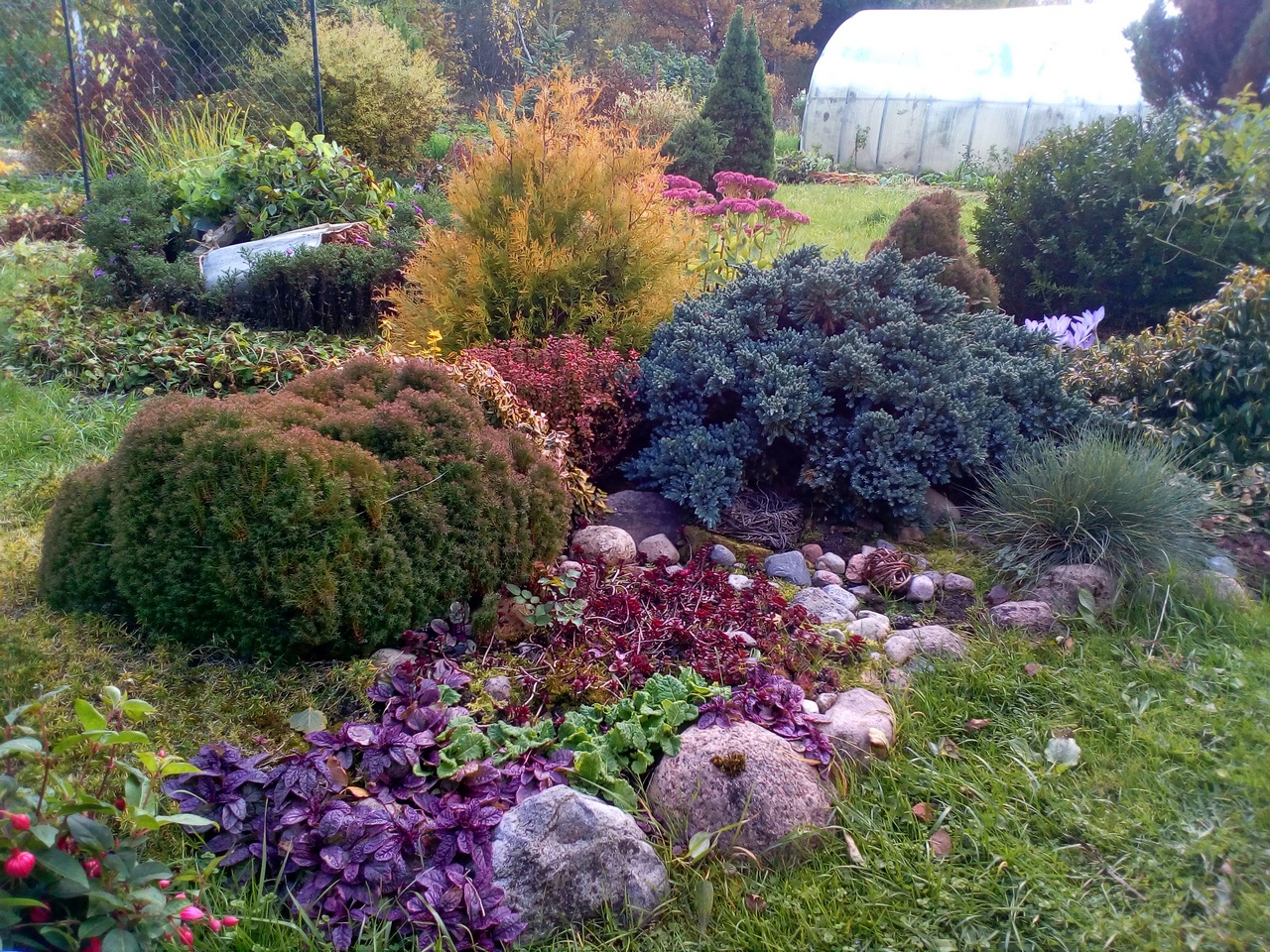 Тут луковичные нужны, карликовые хвойные, травянистые многолетники. Но, вот, во Владивостоке, в Ботаническом саду( а он, вообще, на каменистой россыпи, на холме. Да и родина хост видовых - Дальний Восток) - очень хорошо смотрятся хосты и камни.