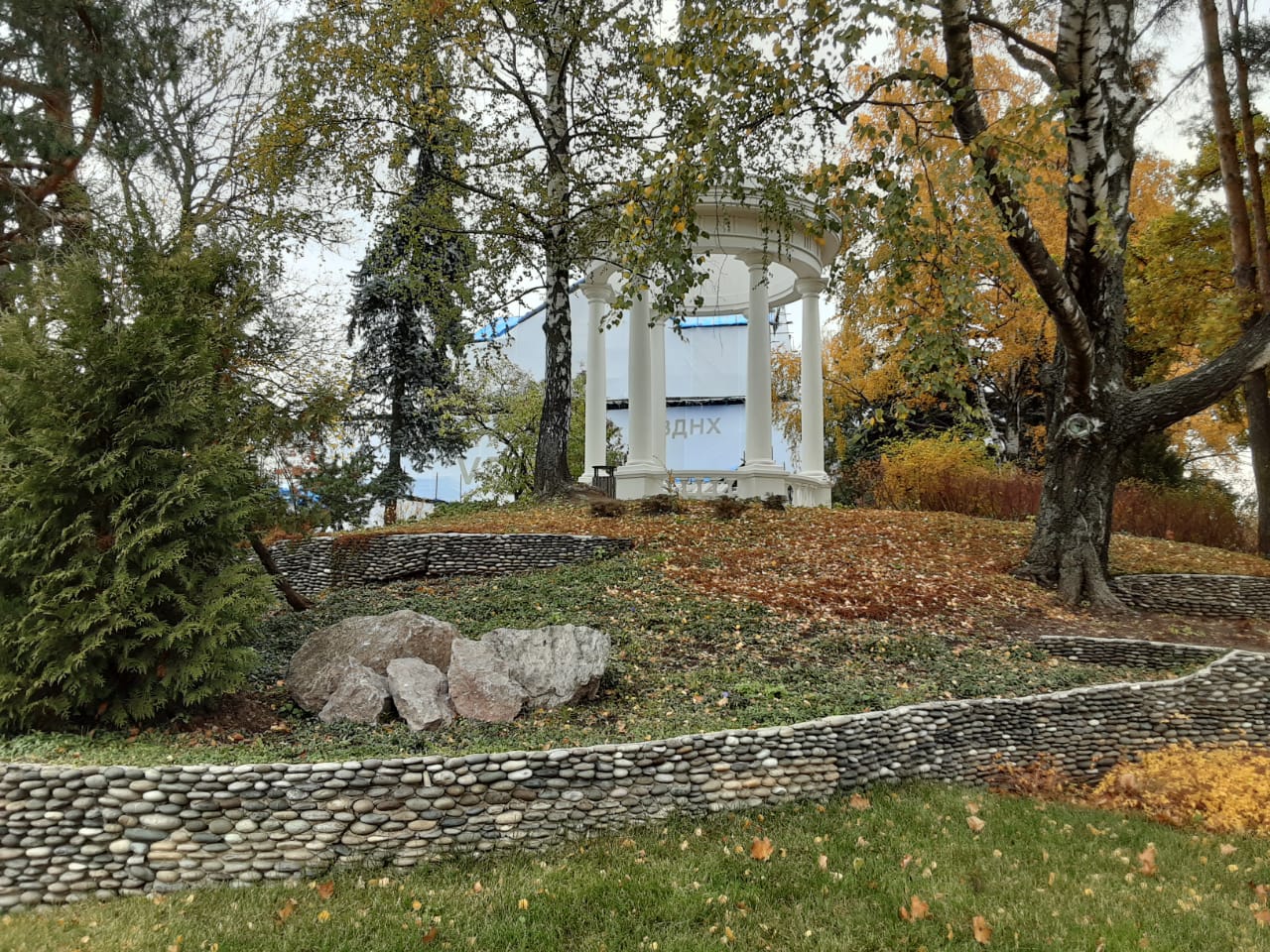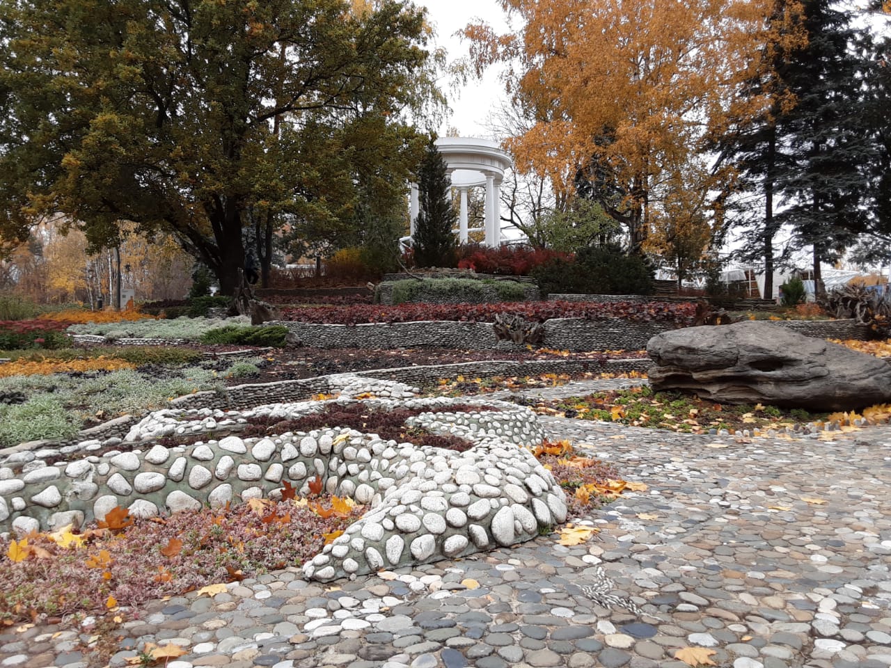 Вот сколько мы за это лето усадебных парков посмотрели, нигде не нашли применение валунов как украшение. Вспоминается только искусственный Большой хаос в Алупкинском парке. Может, из-за масштабности? Большие территории - большие декоративные украшения? Павильоны там, обелиски... Даже террасы каменными стенками не подчеркивались. Вот, например, в усадьбе Гончаровых, прочла в дендрологическом описании парка, углы дорожек "подтверждались" кустами рябинника. Никаких камней. Почему