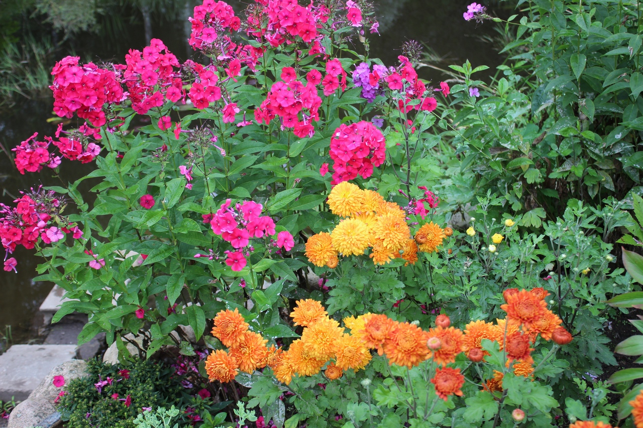 Девочки, вот выложила фото... и задумалась... Снова вспомнила известного ландшафтника, который утверждал, что жёлтое с розовым не сочетаются. Может, он и прав. А с чем вы сажаете хризантемы? Просмотрела свои фото... в сочетаниях нет фоток. Если хризантемы, то только в одиночестве. Белые ко всему подходят! Вот их и буду разводить. Однажды решила посадить мультики бордюром, но они зацвели не все сразу и тоже картинку не дали. Уже выкладывала это фото...