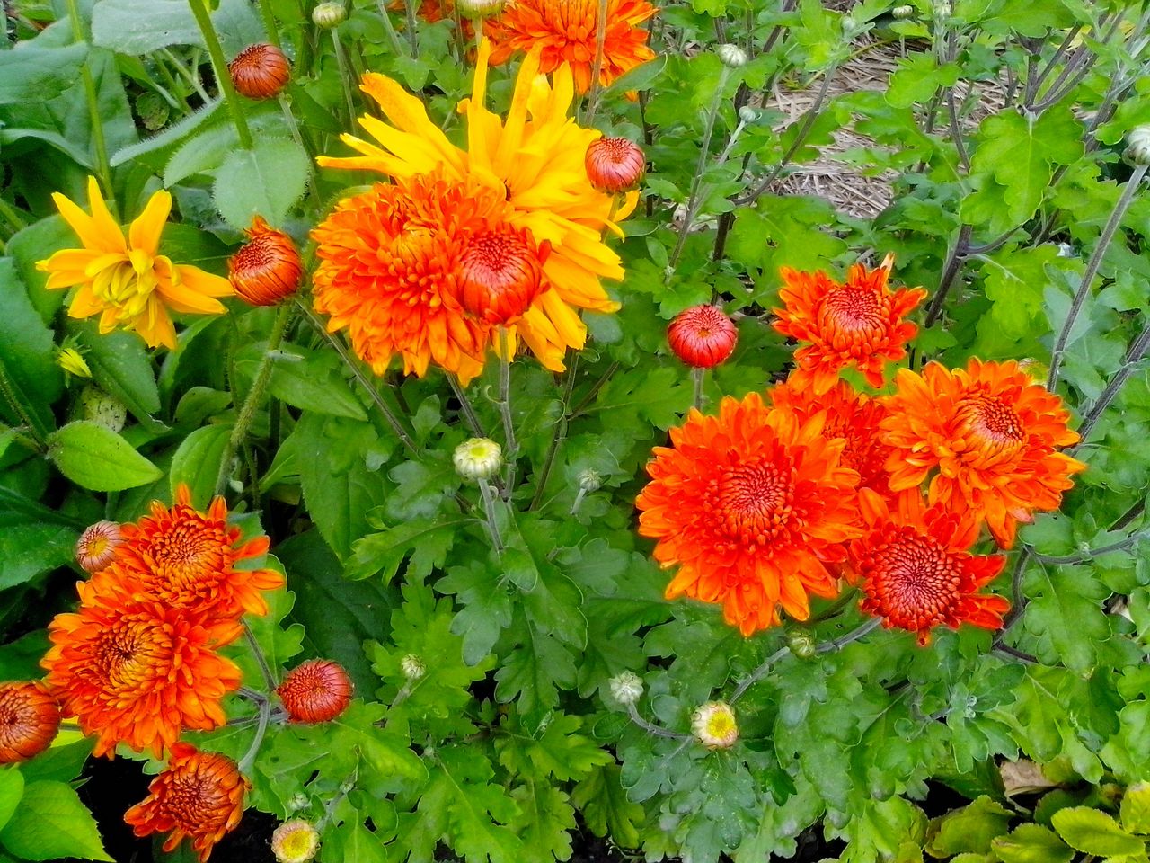 И ещё одна мысль пришла, почему не получается их сочетать с другими. Причина тоже в том, что нужно пересаживать часто. А попробуй найти каждый раз подходящее место! Вот и торкаем просто в свободное место. А тем более, Марина права, осенью то рядом одни "укрывки"... нет соседей... Нужно искать хризки, что цветут рано, хотя бы в августе. Не укорачивать же им день искусственно, притеняя, чтобы создать им короткий день... Говорят, что сейчас есть сорта, что не зависят от длины светового дня. Я таких не знаю.
