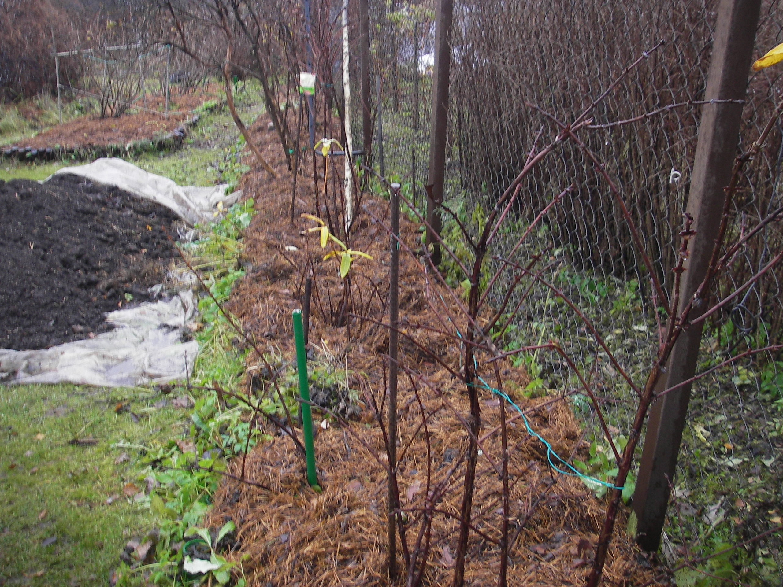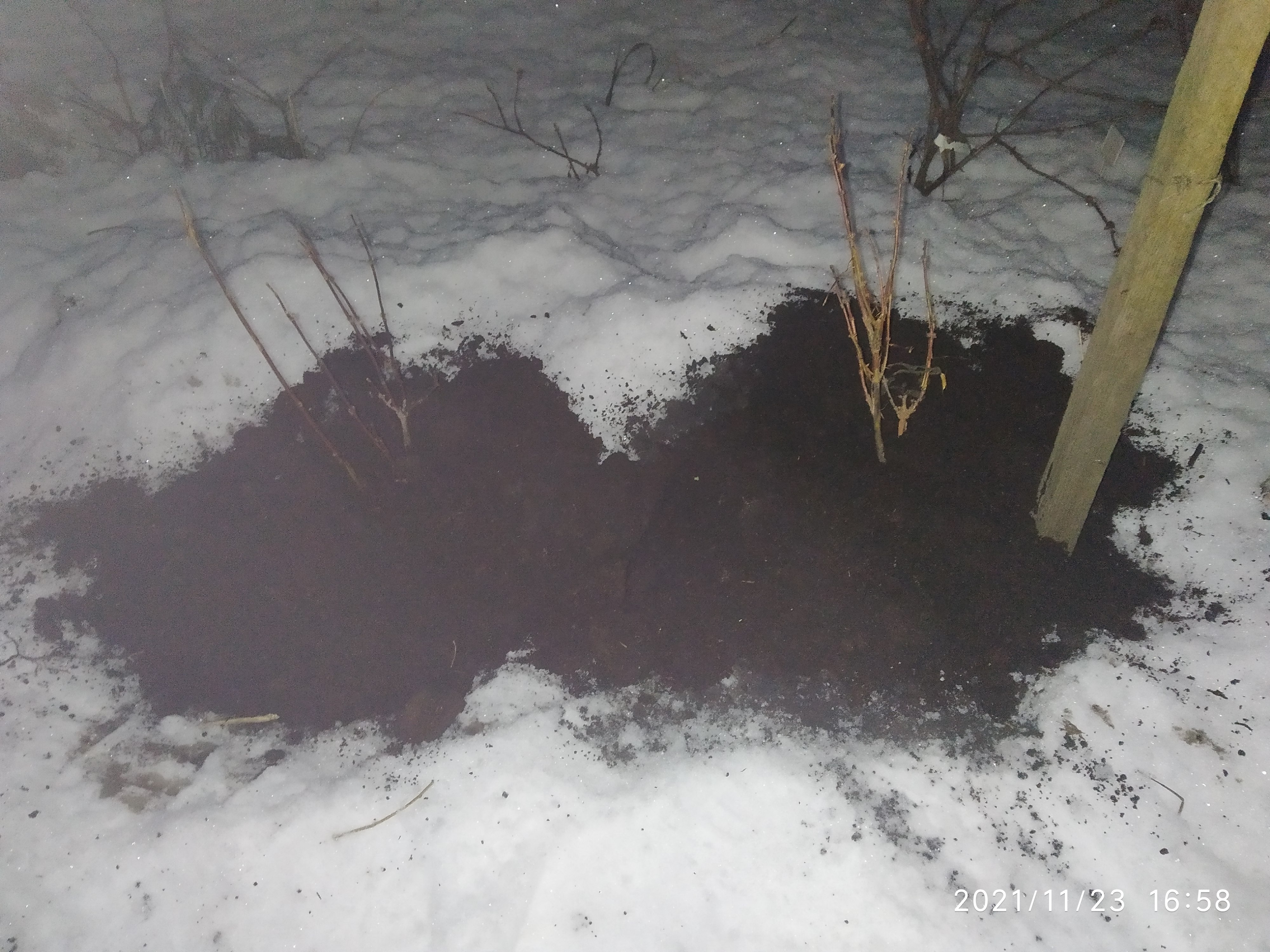 Осенью купил 4 саженца двухлетки с ЗКС бакчарской селекции. Подготовил ямы, заправил их сытной землей. Укрыл участок земли черным анготекстилем. Посадил саженцы. Теперь будем посмотреть, что получится :jokingly: