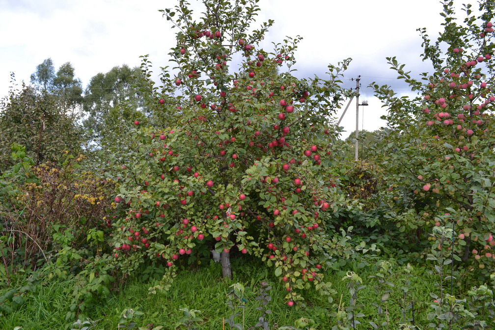 Для понимания особенностей участка, Антоновки прожили лет по 40, есть повреждения коры, этой весной спилили одну, у ней на уровне почвы сердцевина начала гнить, хотя той осенью на ней были яблоки.
