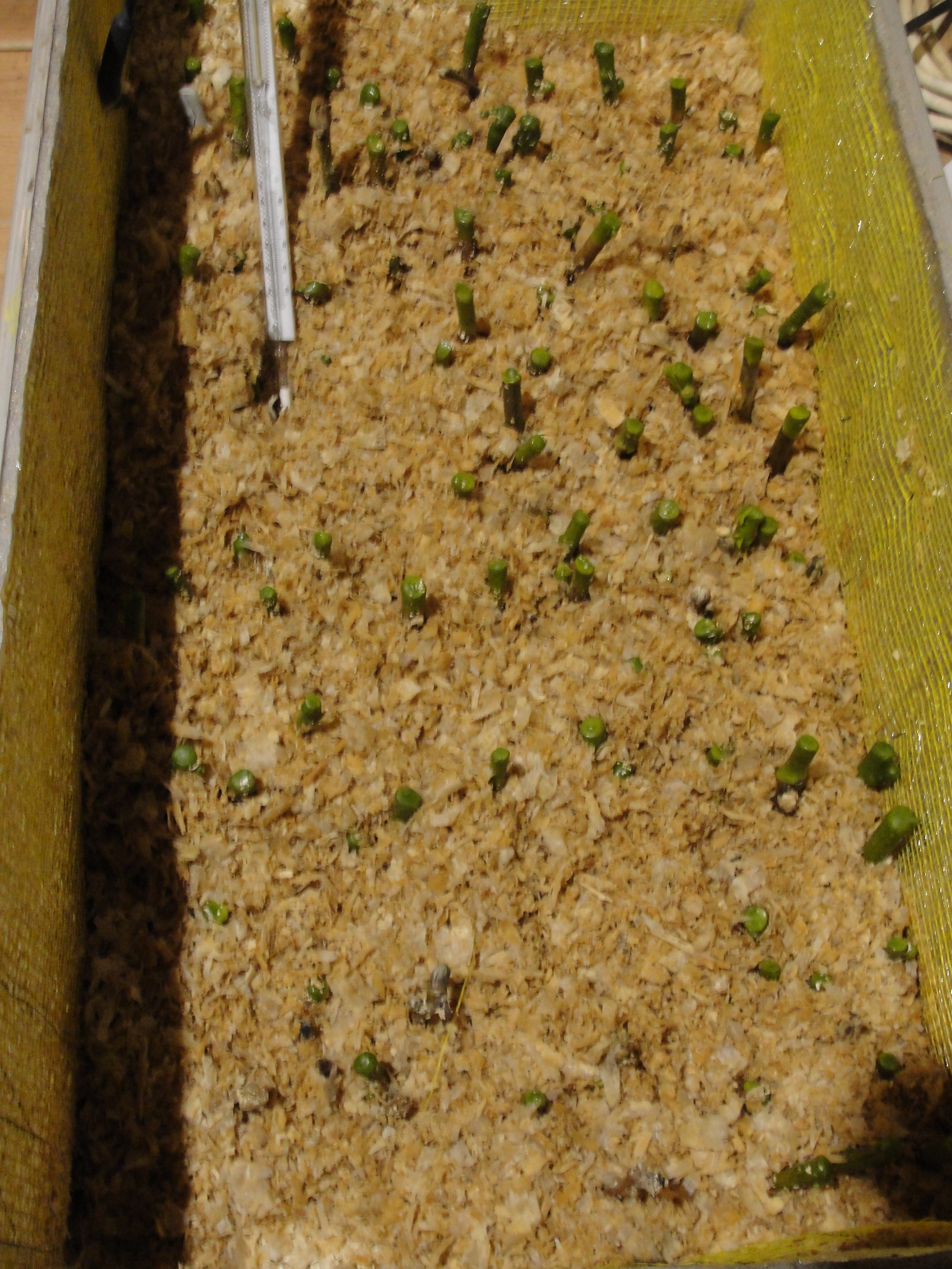 Короче опять ящик ( кильчеватор ) полный ..во избежания выпревания мелких почек привоя уже не с головой засыпаю опилками ...
