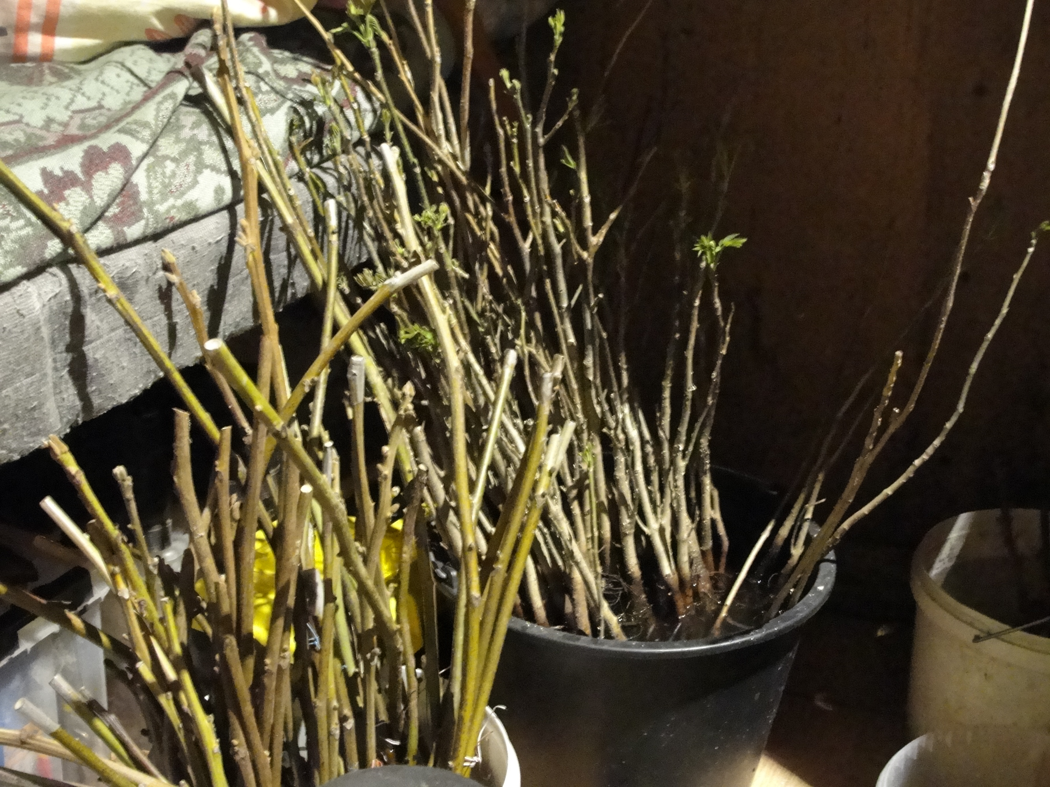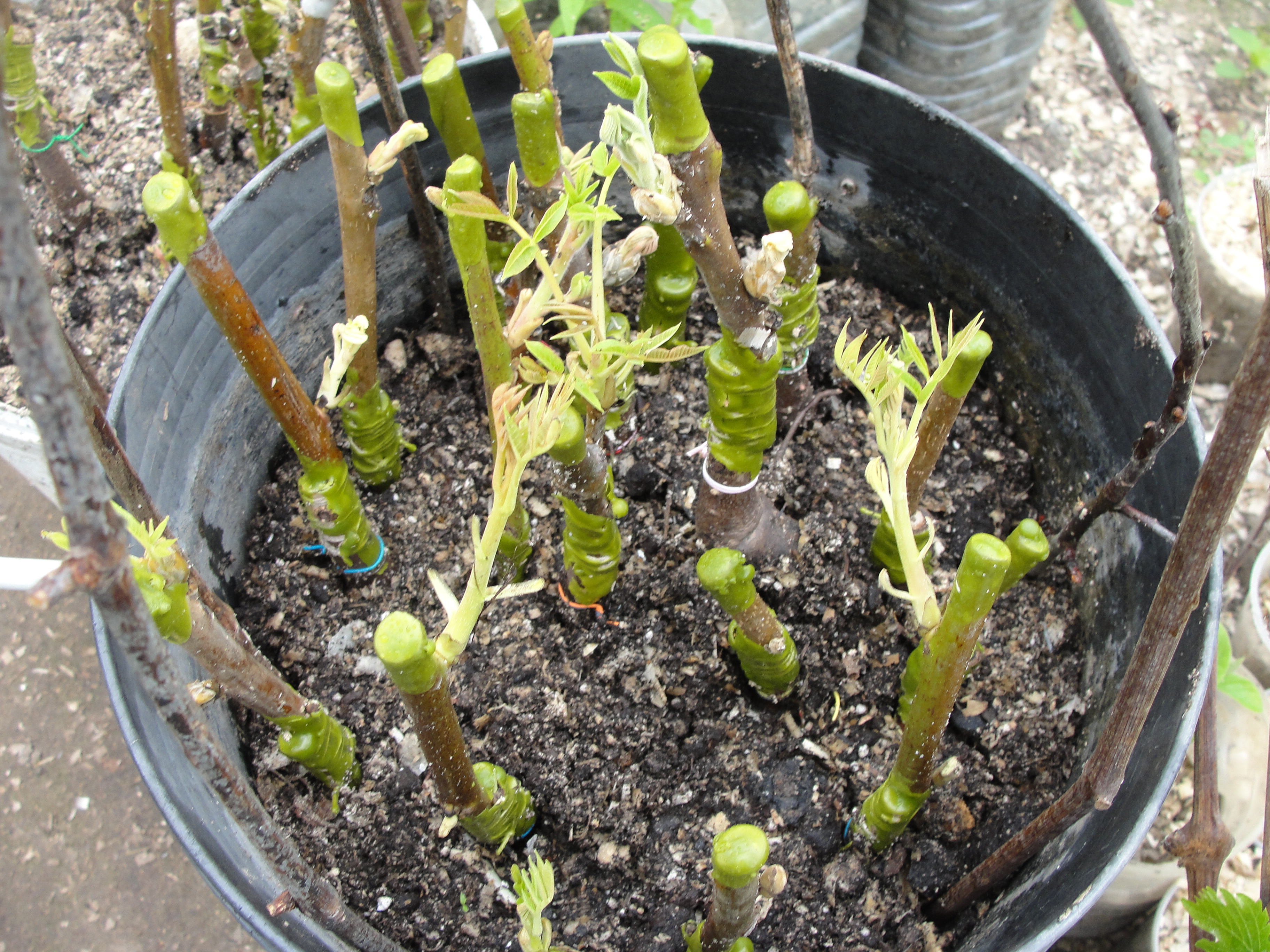 Половина прививок пошли в рост , их в вёдра ( торф с опилками ) штук по 12-16 и под пакеты ( понятно нужны отверстия для вентиляции ),здесь и влажность нужна высокая , но и чтоб не " подпрели ".....