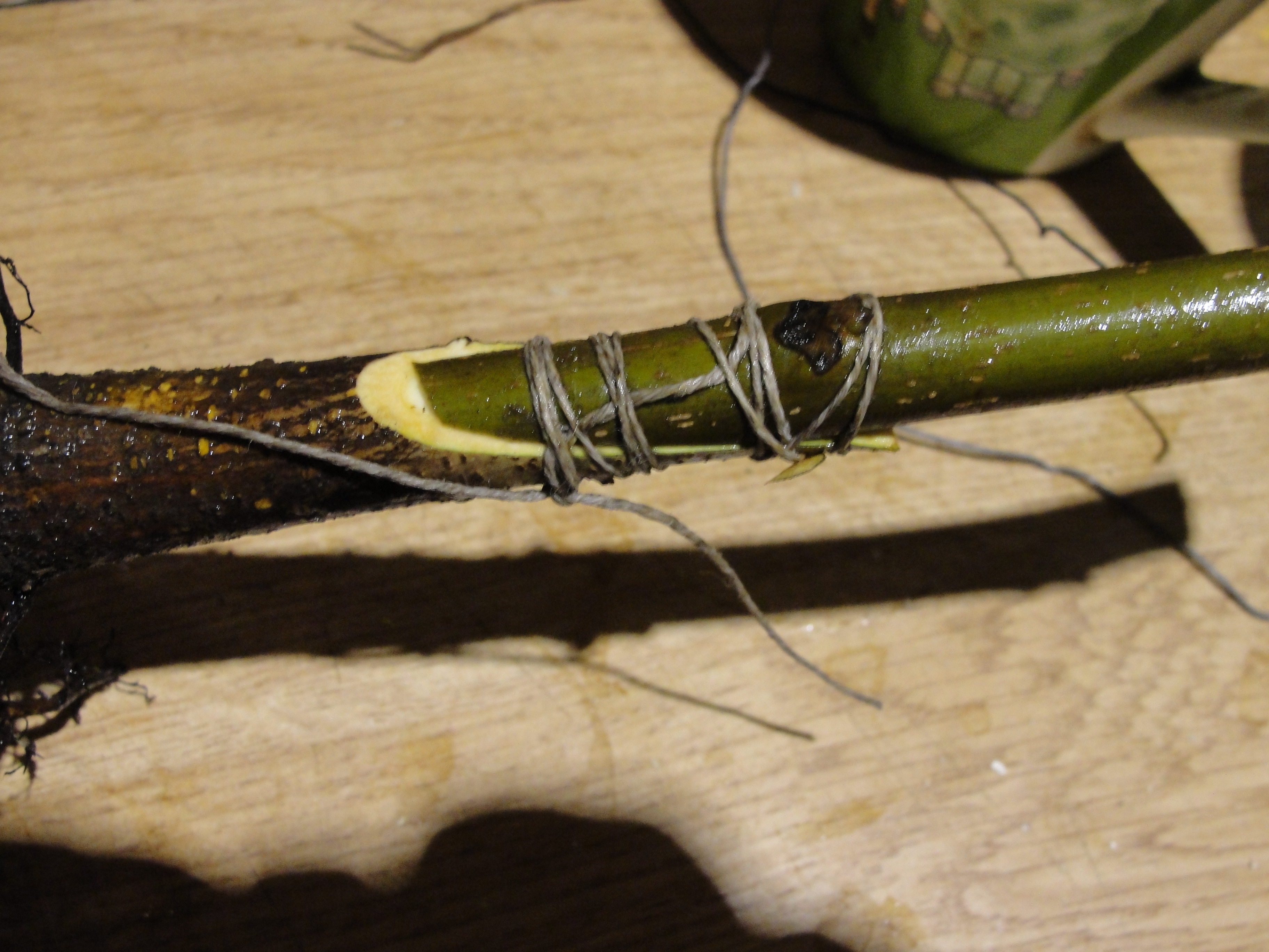 Все прививки обычная копулировка , улучшенная с язычком - время больше занимает , срезы окисляются ... не всегда совпадают диаметры , плюс кора у подвоев толще и приходится совмещать приводящие сосуды ( пучки ). Ну и привык к шпагату , то есть нужна буквально опрессовка ..плёнка есть хорошая но не стянешь , если какие огрехи срезов .
