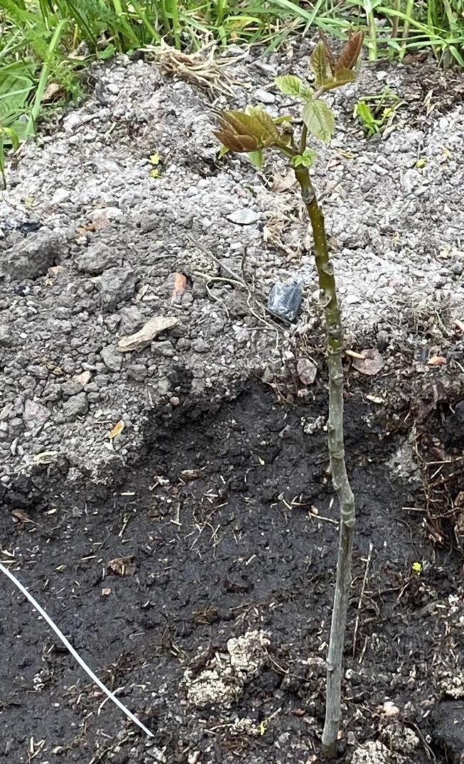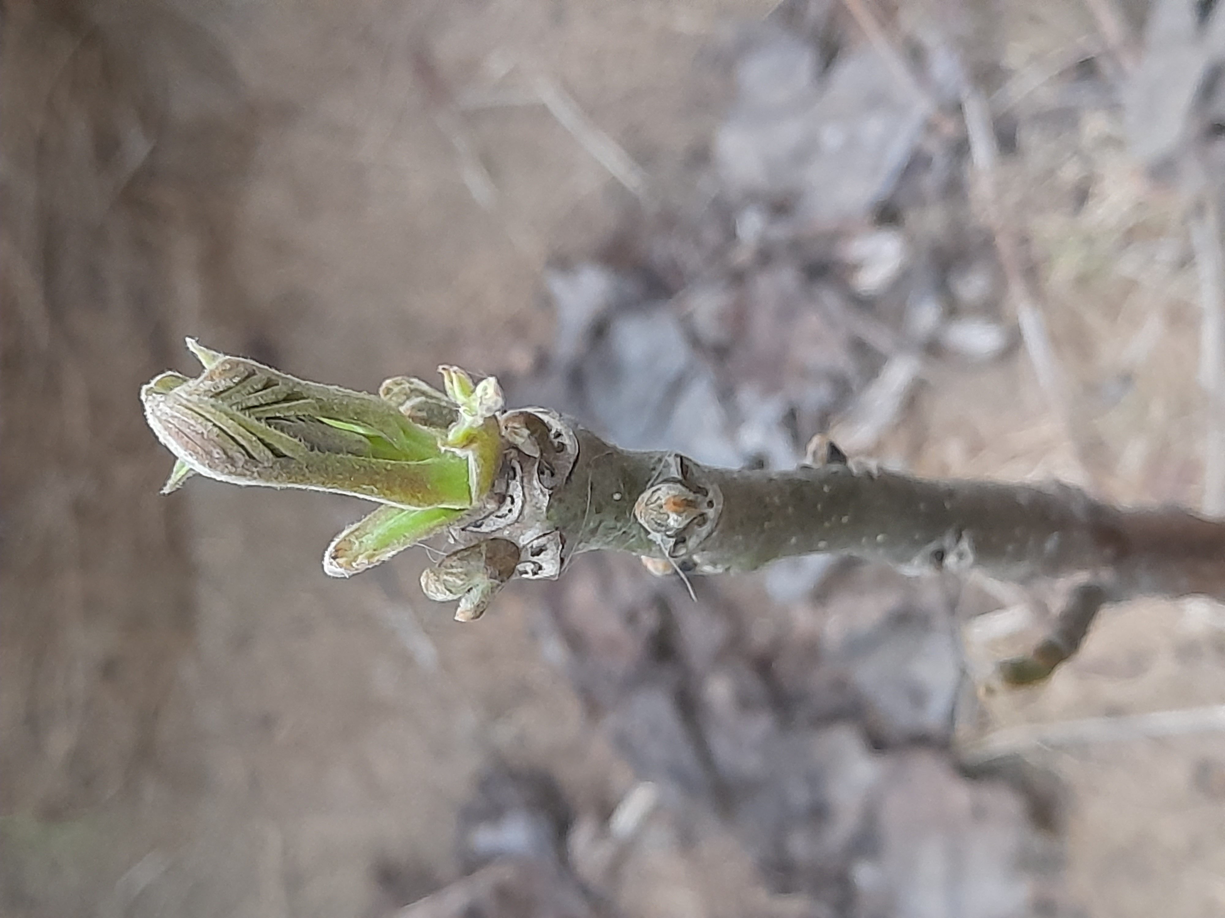 В 2022 году две декады мая на западе Ленинградской области получились реально прохладными. Как результат - у половины грецких орехов онтогенез на фазе набухших почек. На фото - передовик среди грецких орехов по развитию листового аппарата в Летнем саду Кингисеппа 23.05.2022