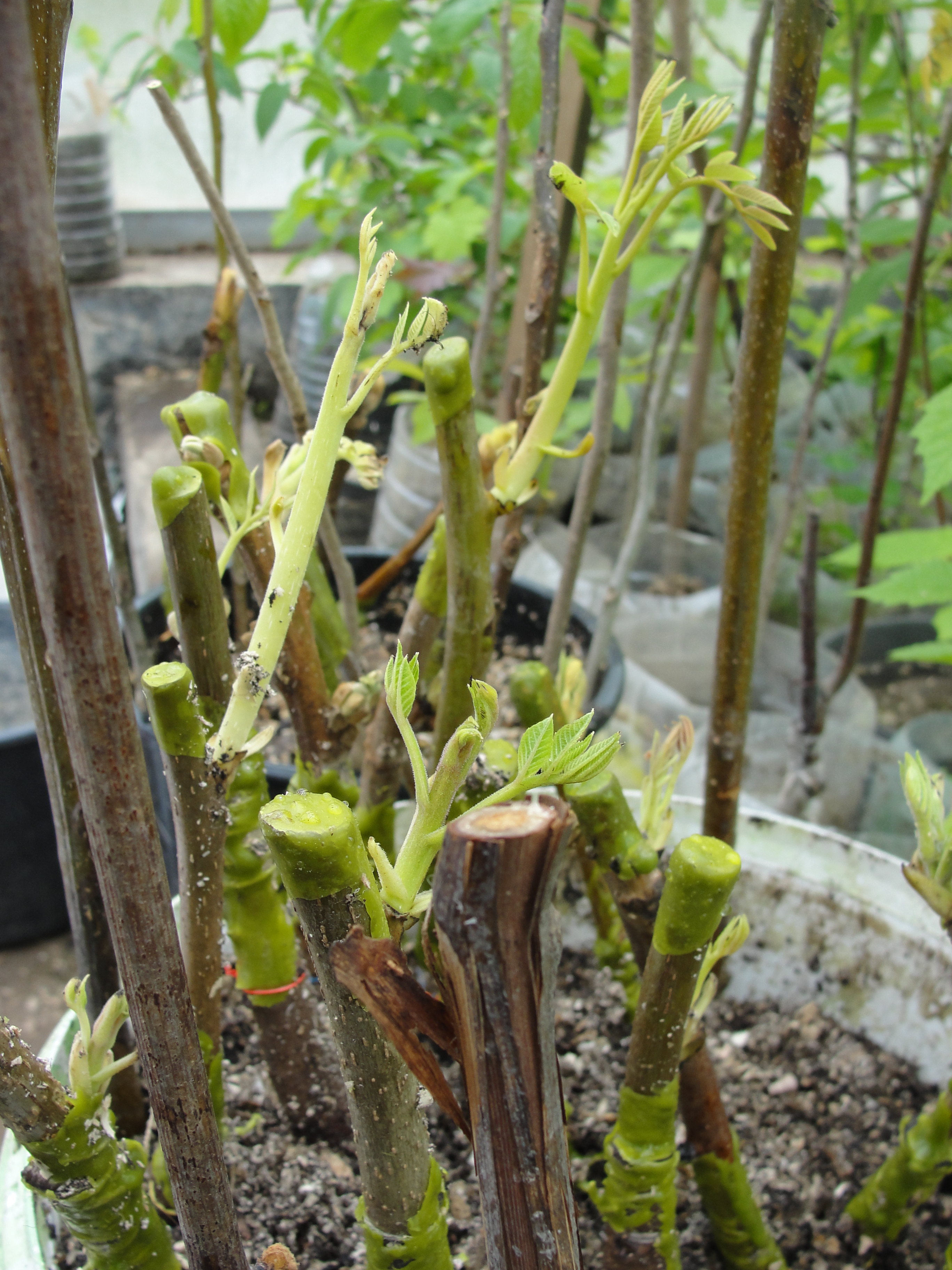 Noyer, Спасибо , но я пока крайне осторожен с оценкой :-) задача чтоб сели образцы , хоть по одному ...6-7 сорто форм Левина просто отменный орех по всем показателям и как одержимость какая то иметь материнские формы ( то бишь привитые ) ..плюс при элементарной агротехнике будут на порядок более урожайными ..опять же достаточно зимостойкие . Сеянцы как бы хорошо , но привитый лучше ( вспомнилось - самолёт хорошо , пароход хорошо ..а олени лучше :-) ) - скажем -немного лирики ..По срокам прививки , ну как бы для себя уяснил сроки в общем вторичны , главное сохранить черенки до конца апреля - есть определённая сложность .Есть иссушение ( потеря влаги ) где бы и как бы не хранились , я в конце февраля все черенки часа на 2-4 ставлю в ведро с водой обновив срезы , чтоб чуток напитались влагой ..этого достаточно и сделав новый срез сразу видно , пересушенные не набирают влагу и их в выбраковку . Подвои копал за две недели до прививки ( в 20 числах апреля , по сути полупроснувшиеся с набухшей почкой ), выкопал подготовил и в кильчеватор при температуре 24 гр., для меня признак готовности подвоя - появление каллуса на срезах и главное первые белые корешки ( на распускание и рост почки не обращаю внимания ).Если таким образом не подготовил и начал сразу лепить результат будет слабенький ( опять имею ввиду свой случай ) . Подвои и черенки с вечера ( перед прививкой ) ставлю в вёдра с водой , посему срезы в момент прививки буквально "сочат " , и что интересно не так быстро окисляются .В выходные планирую провести первую ревизию ( 2 недели будет ) и если дай Бог выхлоп нормальный , то я для себя все вышеперечисленные условия подготовки " зарублю " уже как Отче наш . По сути всё как обычно , но какая то мелочь может свести усилия на нет. Впервые небольшую часть прививок делал и на сердцевидный подвой , тоже интересен результат ...