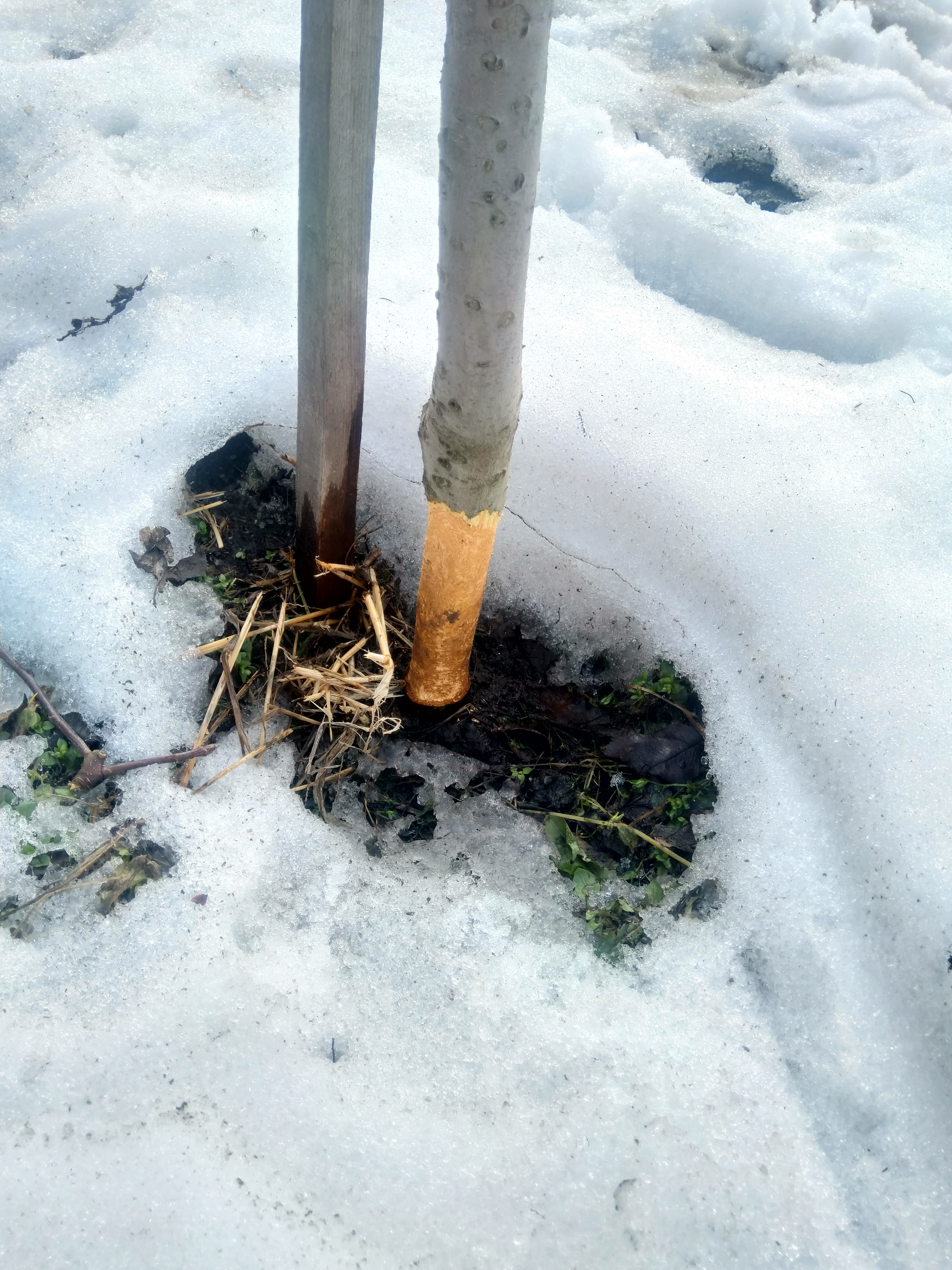 Ладно, у меня было три саженца - выбросил и позабыл. Но если человек высаживает сотни саженцев, то их надо как-то защищать и от мартовских морозобоин? Как я уже говорил, я с таким столкнулся впервые за много лет.