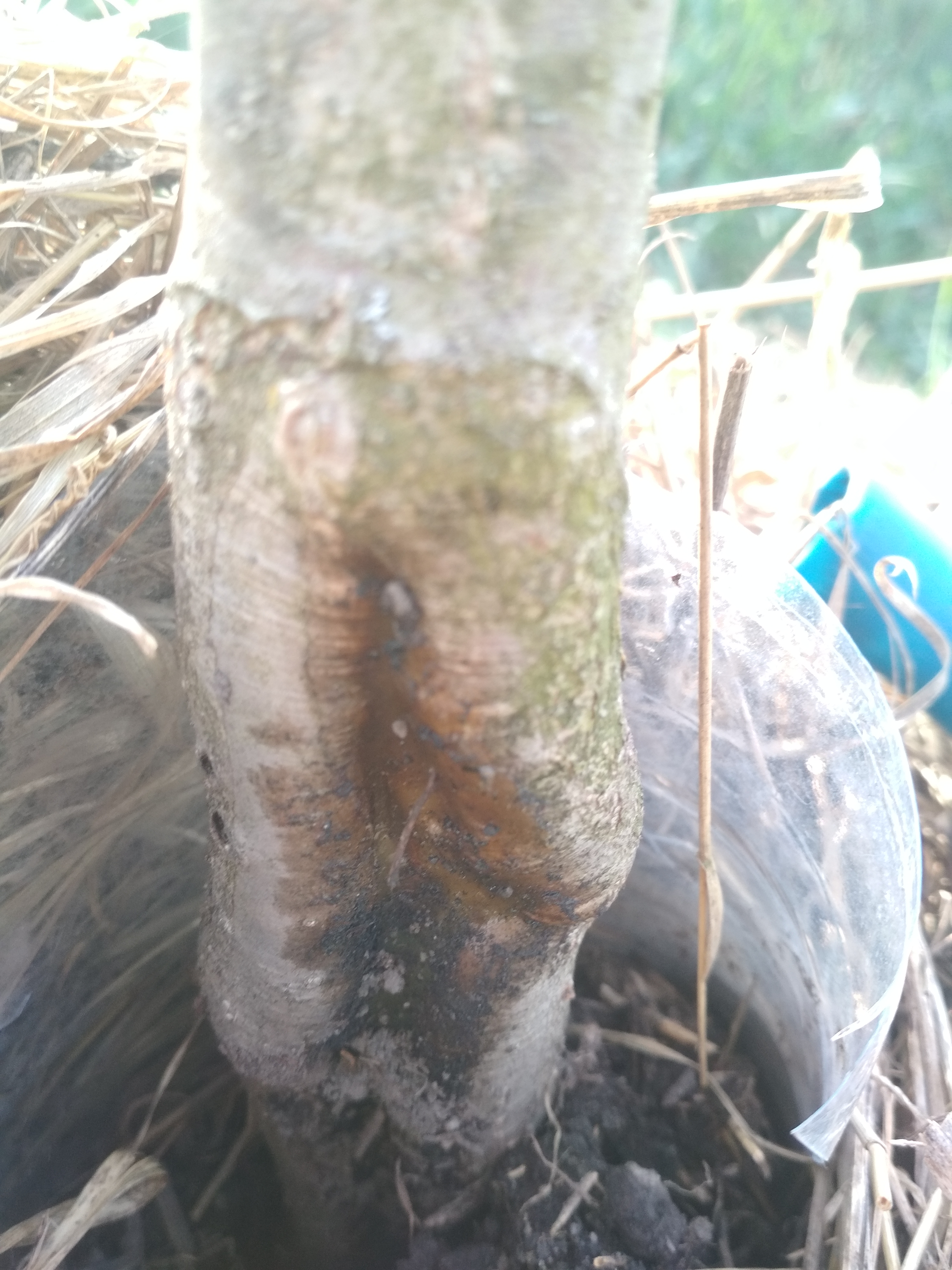 Но сверху раны заросли (ну или по крайней мере я так вижу на фото), а снизу нет. Такое ощущение, что зараза распространялась сверху вниз по саженцу.