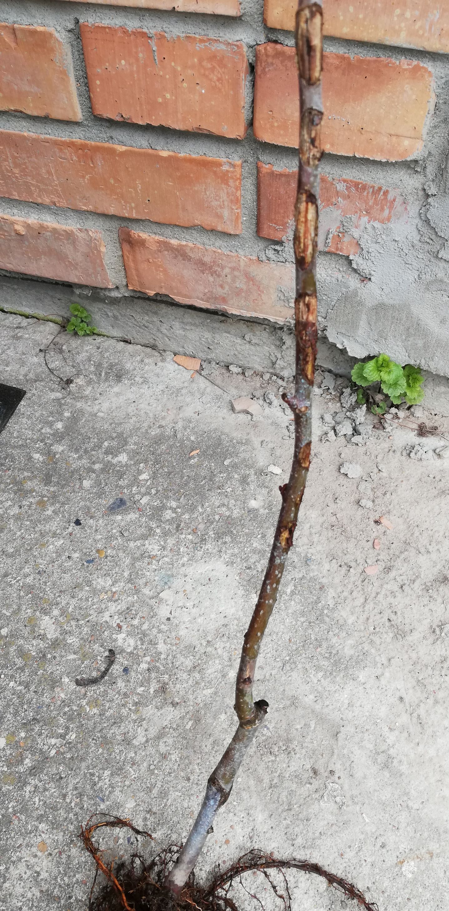 Все-таки, на 98% склоняюсь к тому, что это морозобоины. Они на всех 3-х саженцах с одной стороны: юг, юго-восток. Все саженцы абсолютно живые, корневая система хорошая. Ред Бефорест обрезал на обратный рост и пересадил в другое место. Коваленковское и Санрайз выбросил в костер без сожаления.